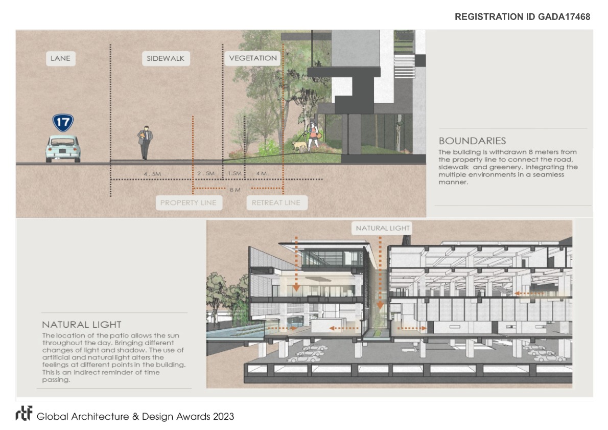 In this project, the environment transforms our design. The commercial space integrates with nature and stands for sustainability. We are designing for the future. A place where we turn our environment for the better, have a positive impact on human beings and integrate art performance and nature. Nature does not stand necessarily on the opposite side of human activities, but it is our duty to live in peace with our environment.