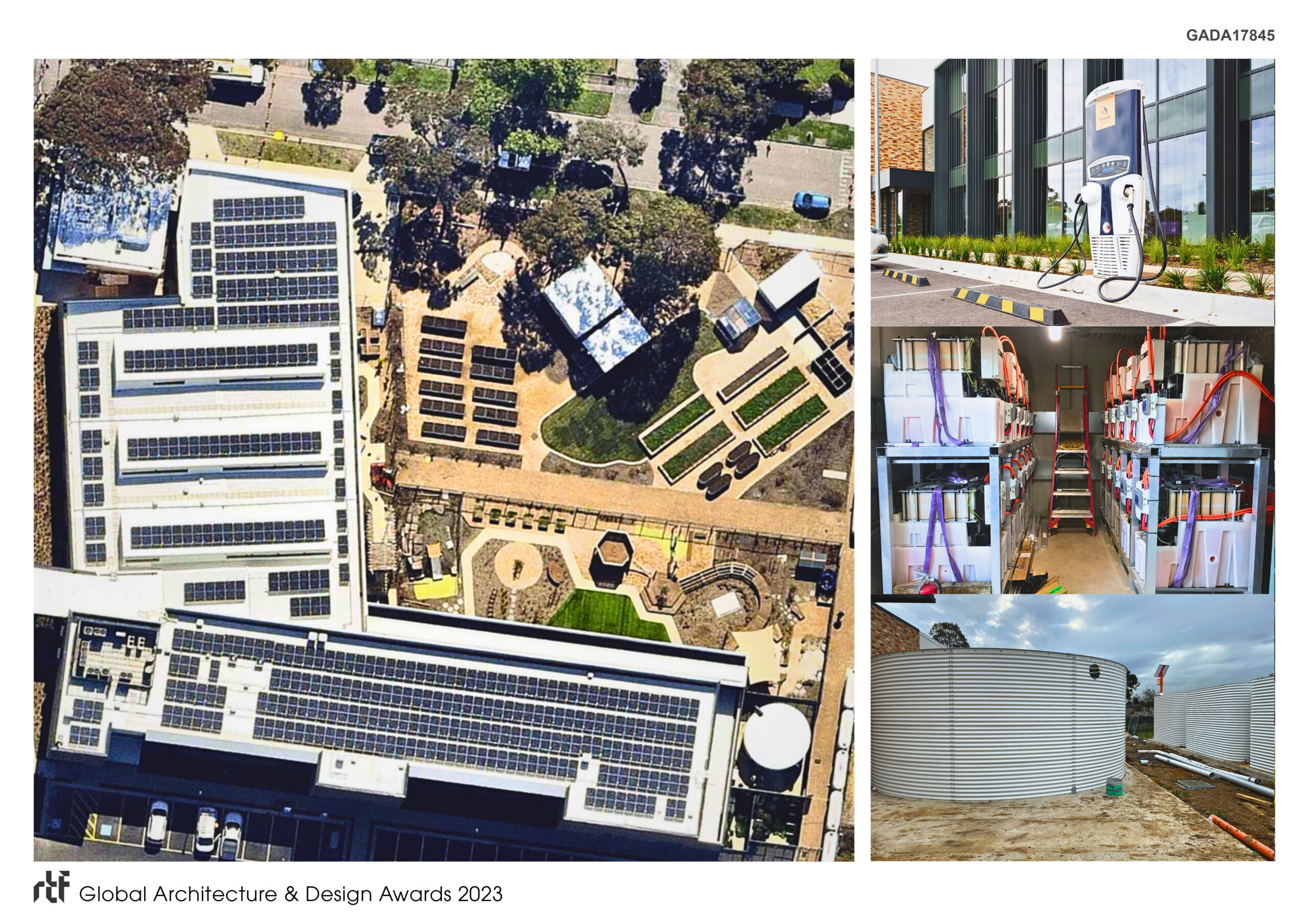 - Water-sensitive urban design with 200,000-liter water storage for facility use.