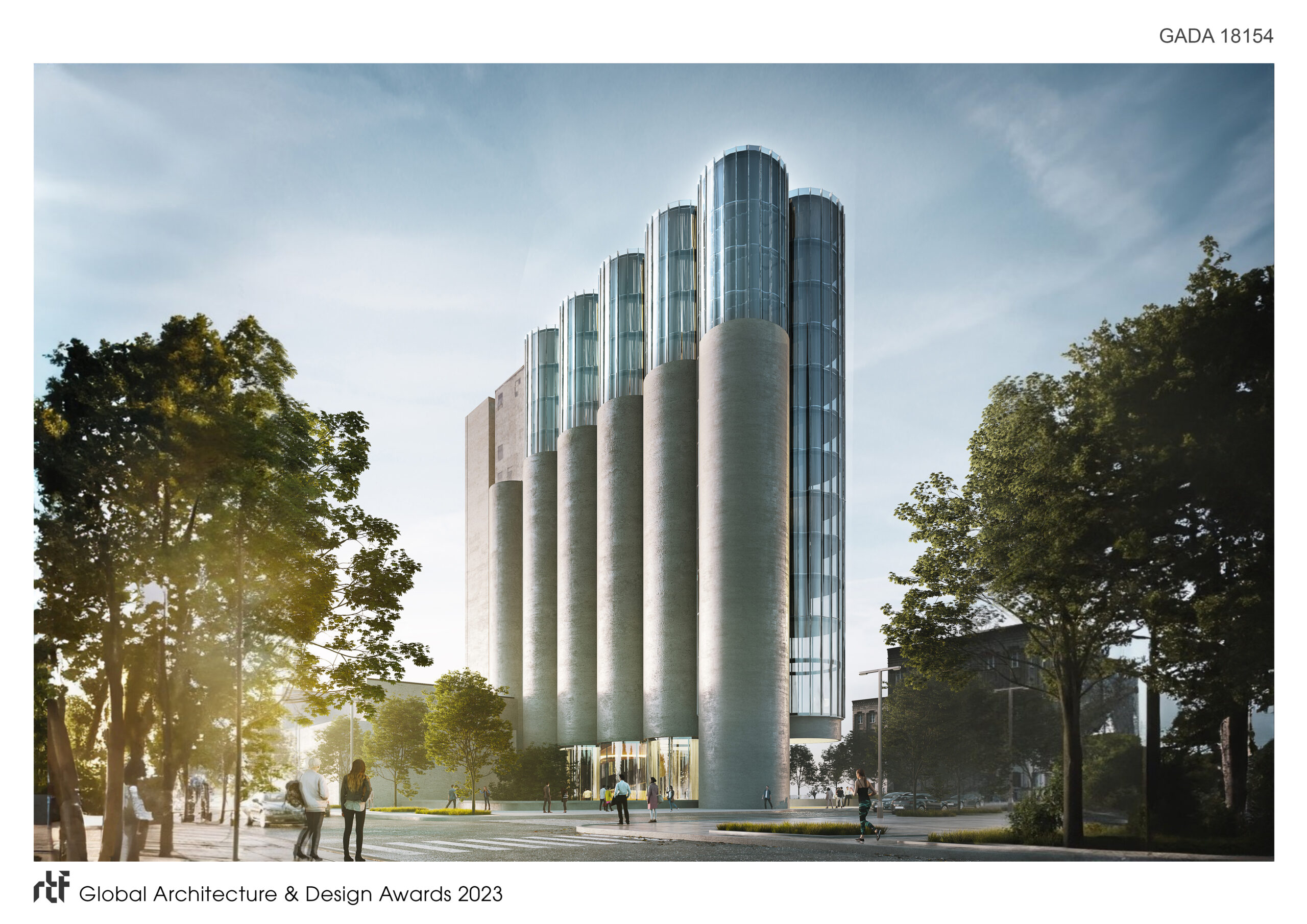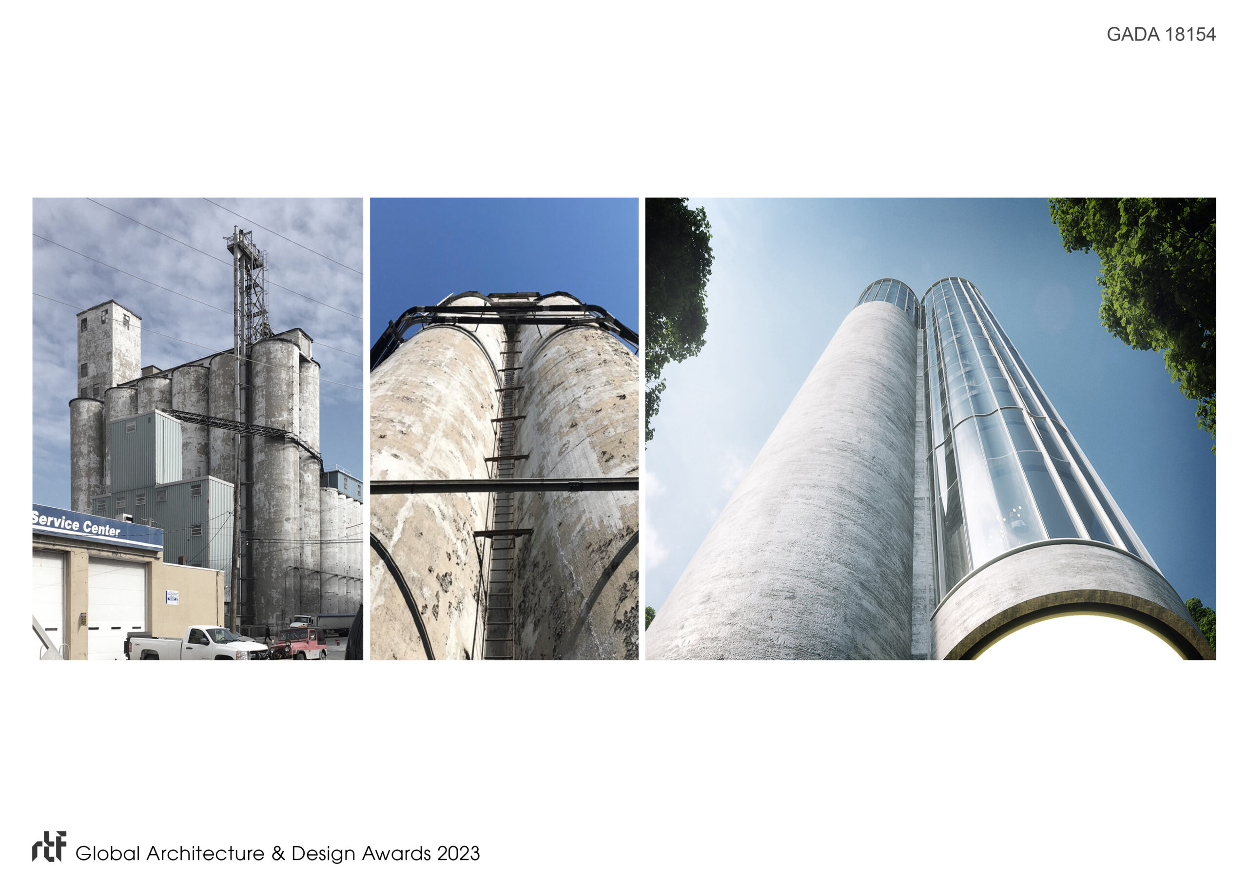 – To the east of the existing silo, a new modern addition would be constructed, housing hotel and residential units.
