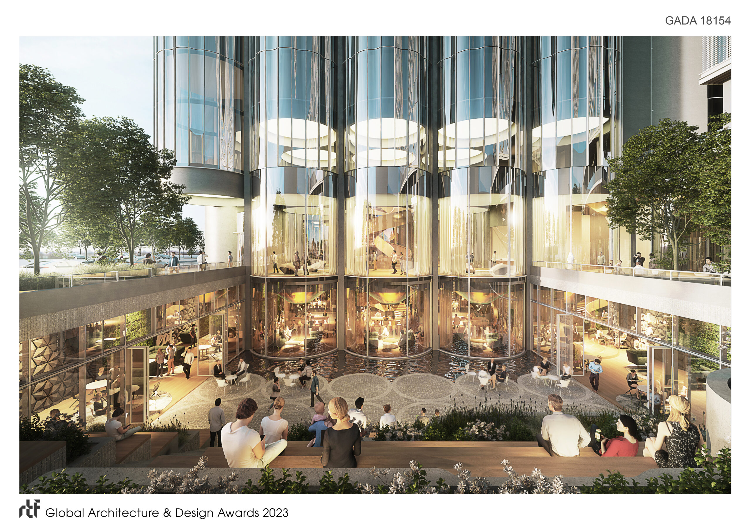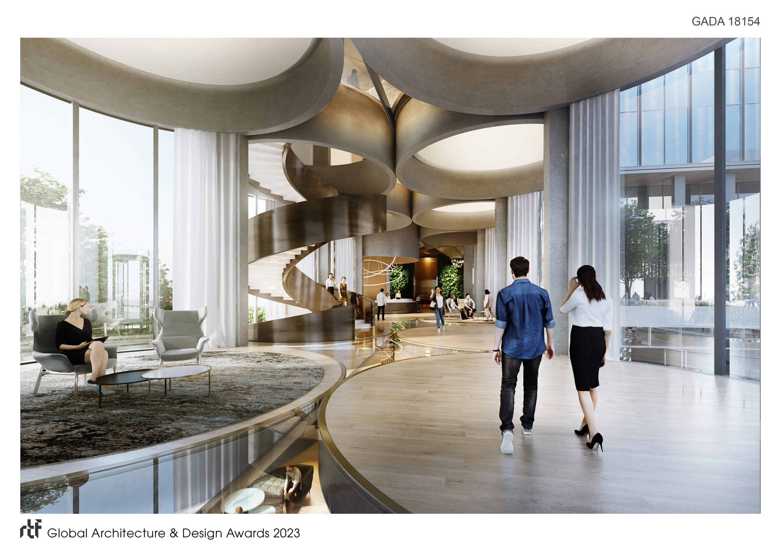 – A series of hydroponic gardens were introduced in the penthouse-level greenhouse. This acts as a green lung for the building, providing access to landscaping in all seasons while oxygenating indoor air. Furthermore, the plants occupying this space would be carefully selected for their ability to produce oxygen and purify the air.
