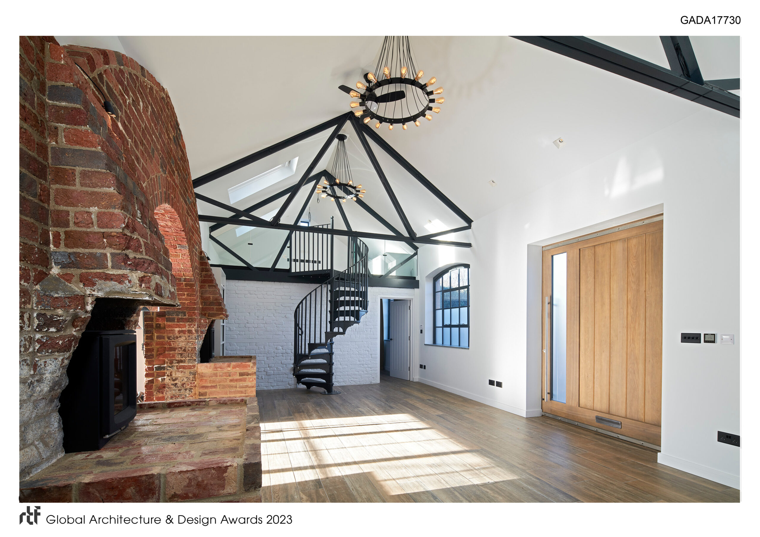 This ambitious conversion project encountered hurdles, including the need to change the building’s use from agricultural to residential. Moreover, it required navigating the intricacies of planning approval within a listed cartilage, in a conservation area. The meticulous journey included a dusk survey, historical investigations, and a tree assessment. The design concept paid homage to the building’s industrial roots. The iconic, still-functional large furnaces, gracefully arched towards a chimney, found new life in the design. The roof support structure was unveiled, revealing intricate trusses that adorned the space. Even the industrial furnaces were ingeniously repurposed as cozy residential fireplaces, a testament to the project’s creativity.