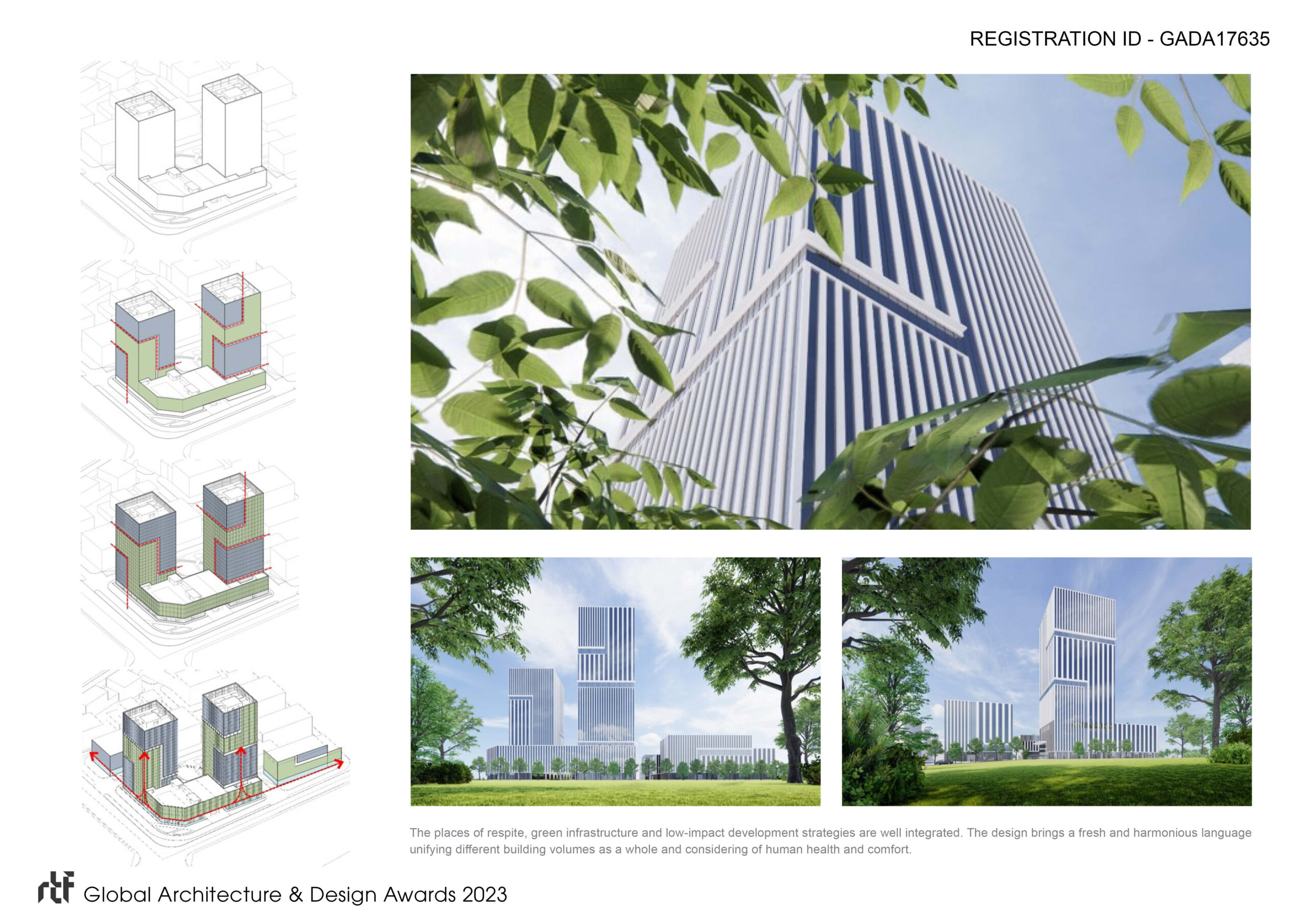 The design brings a fresh and harmonious language unifying different building volumes as a whole, and considering of the people well-being and comfort.