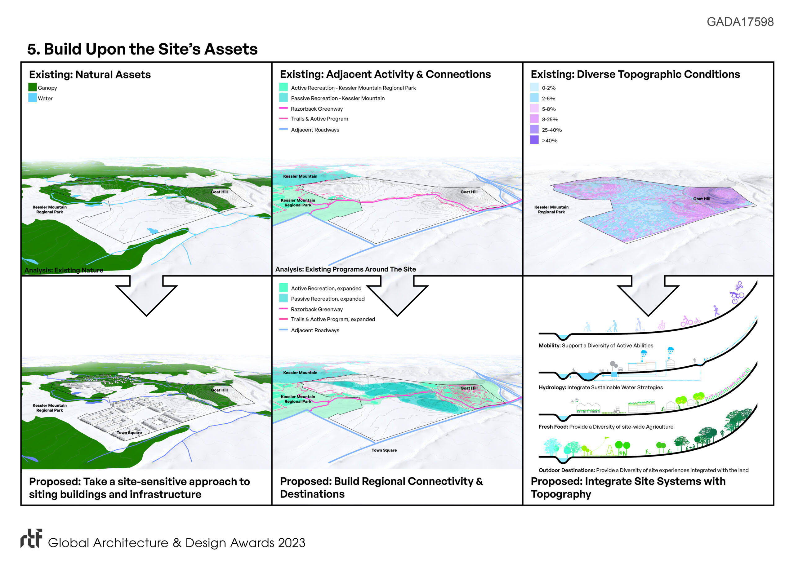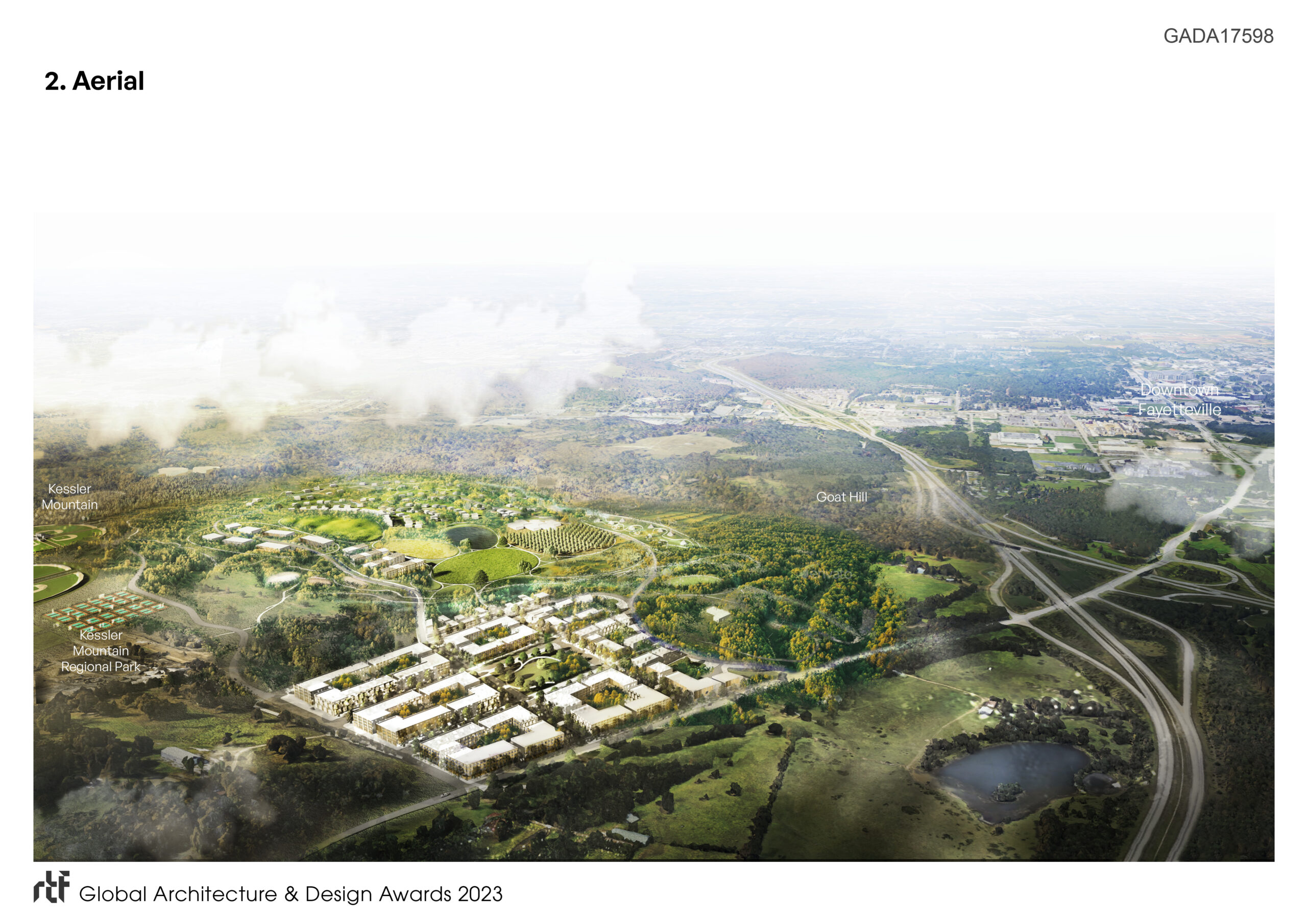 As Northwest Arkansas undergoes rapid growth, a new development at the edge of Fayetteville City limits is planned to heal, not exploit the land. The plan combines the natural beauty of the Ozarks with the rich cultural identity of downtown Fayetteville and the surrounding region of Northwest Arkansas. In this way, the Master Plan for South Cato Springs is conceived as an ecosystem of health that enriches ecosystems of the existing land, while providing a lifestyle of health and wellness for its users through walking, biking, fresh food, and new centers of health for a neurodiverse community, and the region’s Medical School.