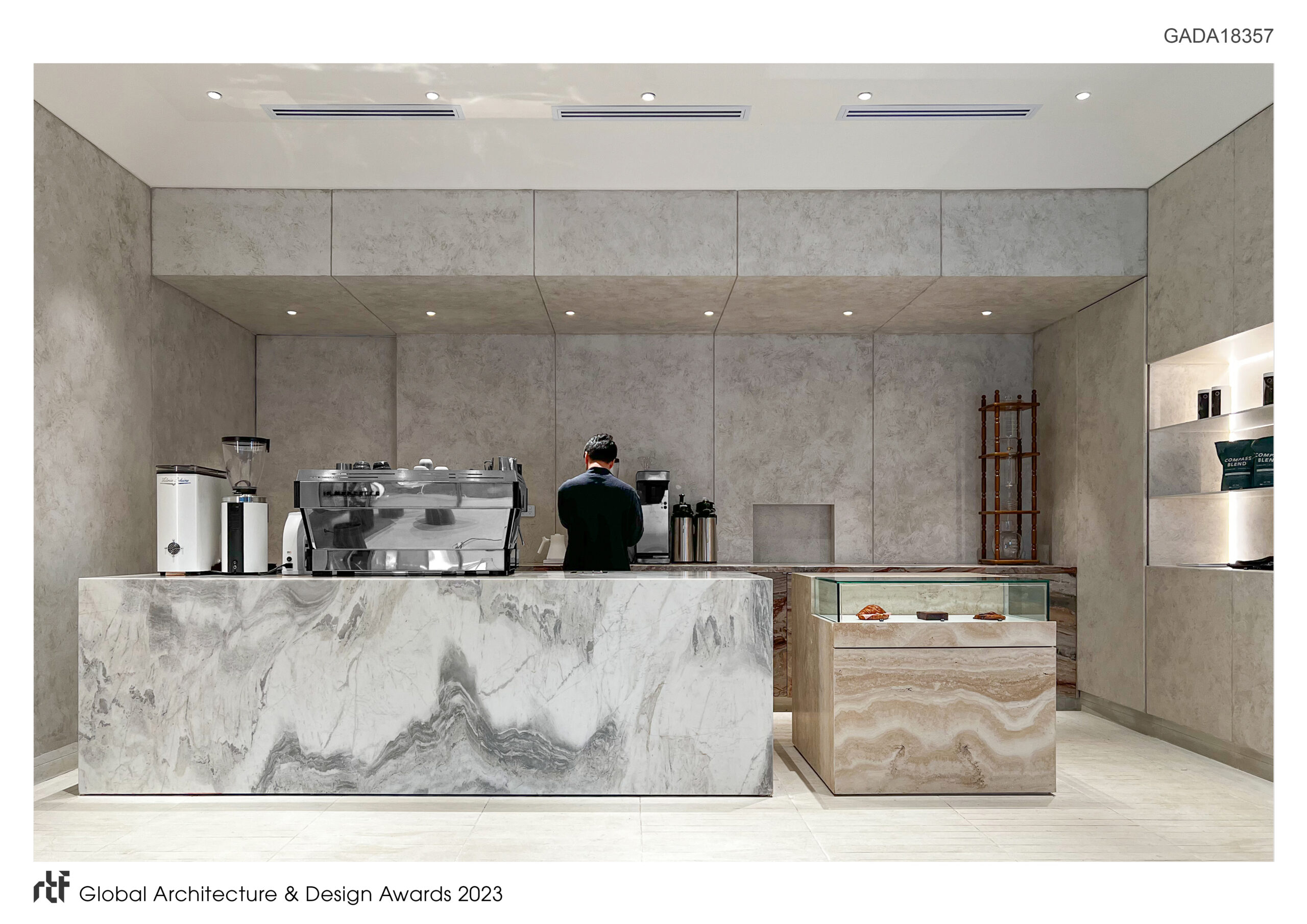 In addition to the aesthetic allure, practicality took center stage in our design process. We meticulously addressed the operational dynamics of the space, ensuring an optimal workflow and storage solutions that seamlessly blend with the clean, minimalistic aesthetic. Leather-wrapped wall panelling adds a tactile richness, embodying the commitment to detail. Recessed water dispensers and thoughtfully positioned merchandise displays enhance both form and function, contributing to the overall fluidity of the space.