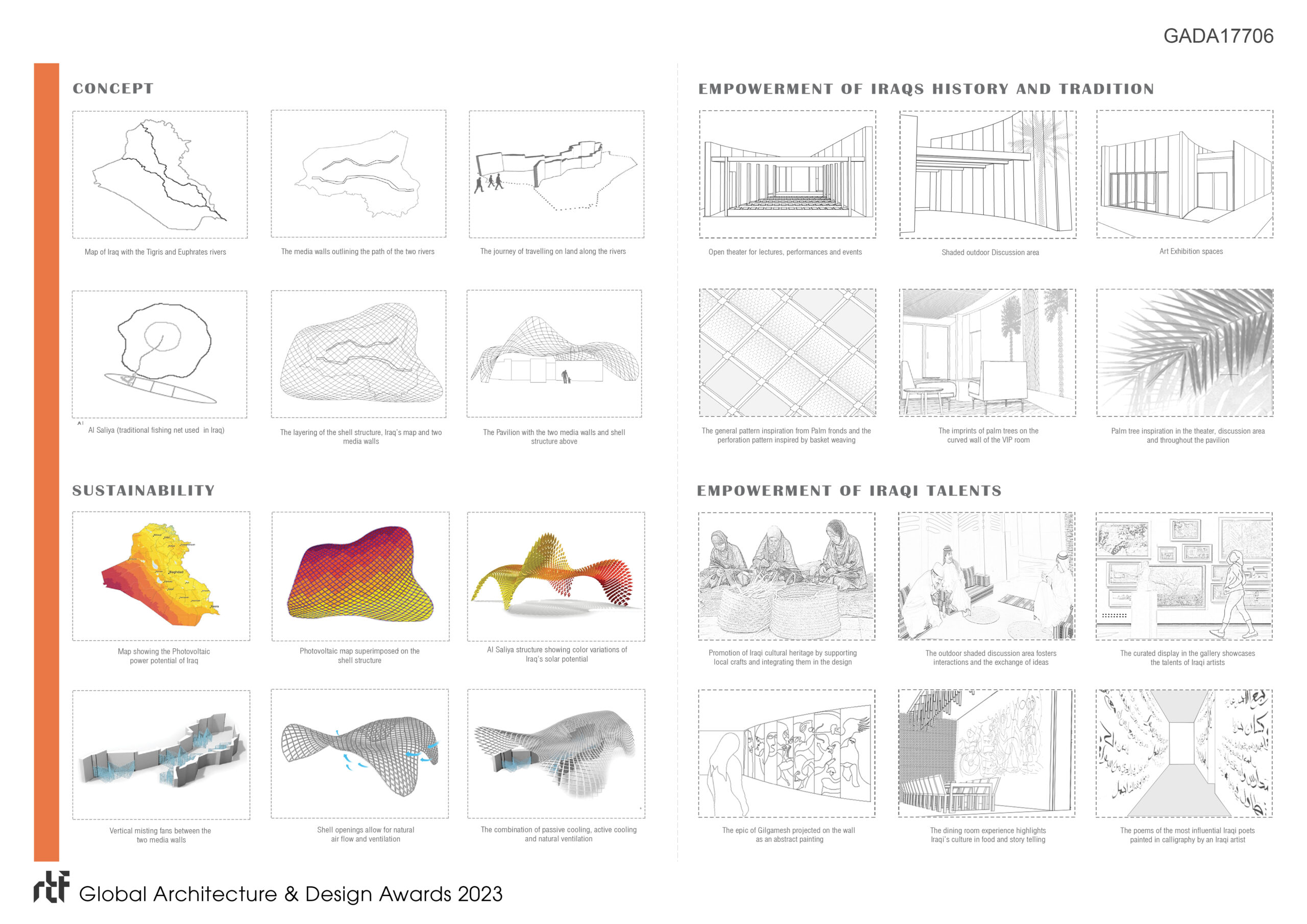 Thousands of years ago, the Tigris and Euphrates rivers provided an opportunity to host the beginnings of human civilization. The first farm settlements were established, allowing farmers to grow crops and catch fish. The abundance of food resources marked the onset of a new life and a growing population. This narrative of Iraq’s origins served as the foundation for Al Saliya’s design.