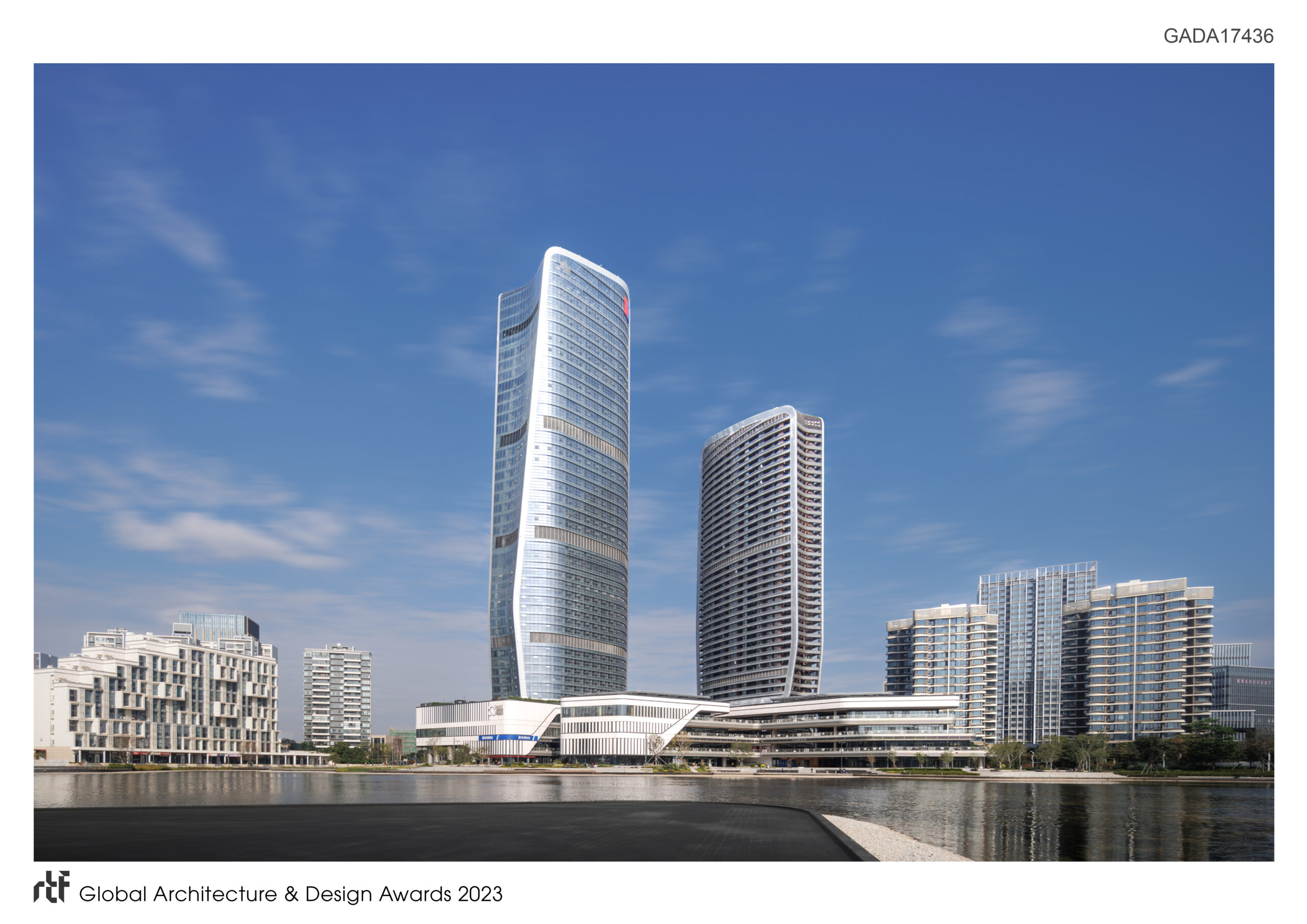 The project sits within the new 3.8 sqkm Jinwan Aviation City masterplan, which offers a mix of residential, cultural, civic, commercial, and retail facilities to serve the needs of the emerging communities within the new city. Each component is set surrounding a new lake at the centre of the site, introducing an opportunity to activate the district with public green space and waterfront activities. The signature development will serve as a catalyst of growth as well as a new focal point for the district while characterizing the architectural language referenced within the entire masterplan.