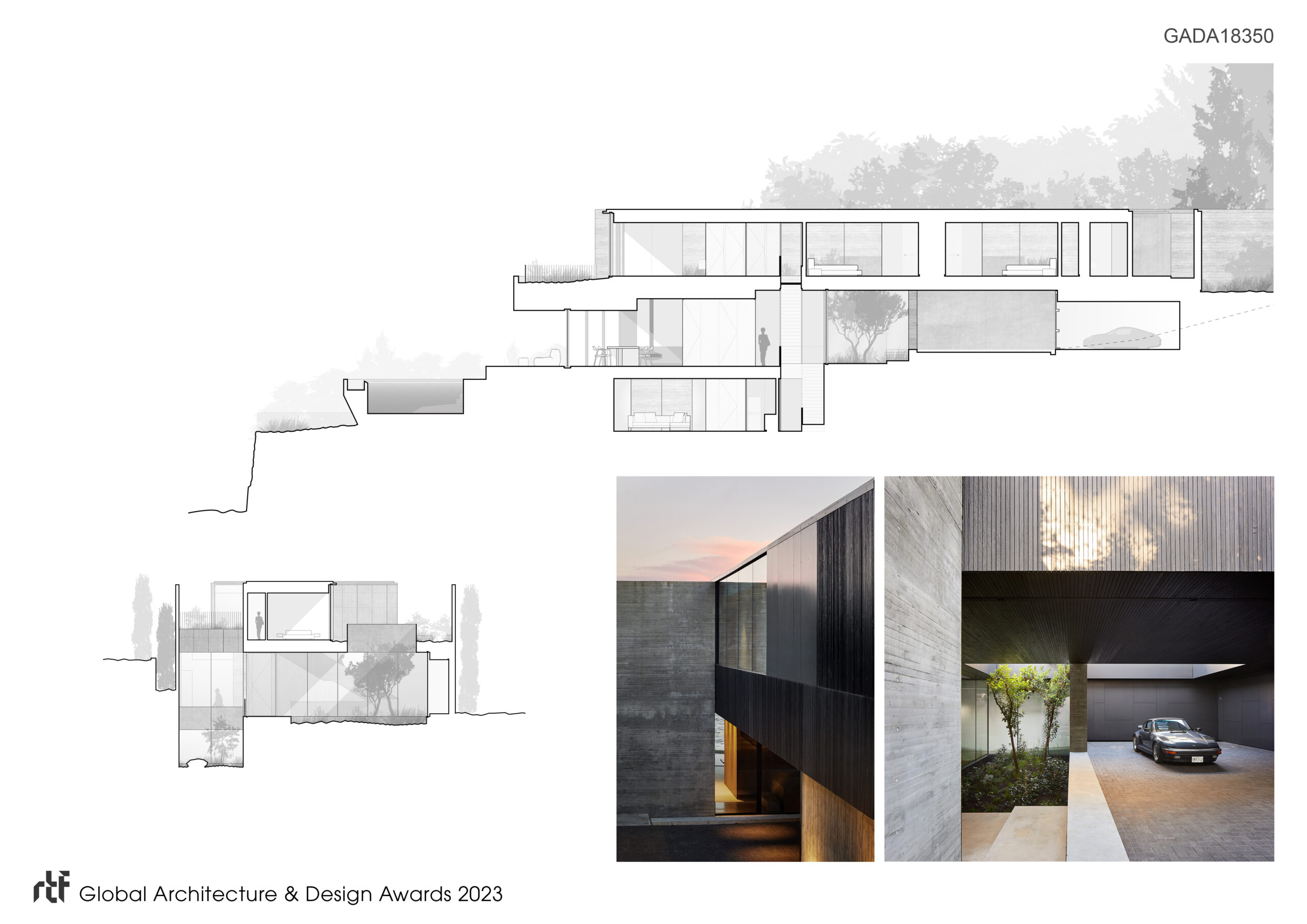 Drawing from our experience negotiating complex topography and tight proximity with neighbours, we have learned to abandon the reading of the project as a series of flat “elevations” which exists from an imaginary or inaccessible viewpoint. Instead, we embrace a scenographic approach where the house can be understood after having moved through and around it. The language of courtyards, cantilevered volumes, and extension of landscaped surfaces onto floor areas below dismantle boundaries between the house and the natural environment.