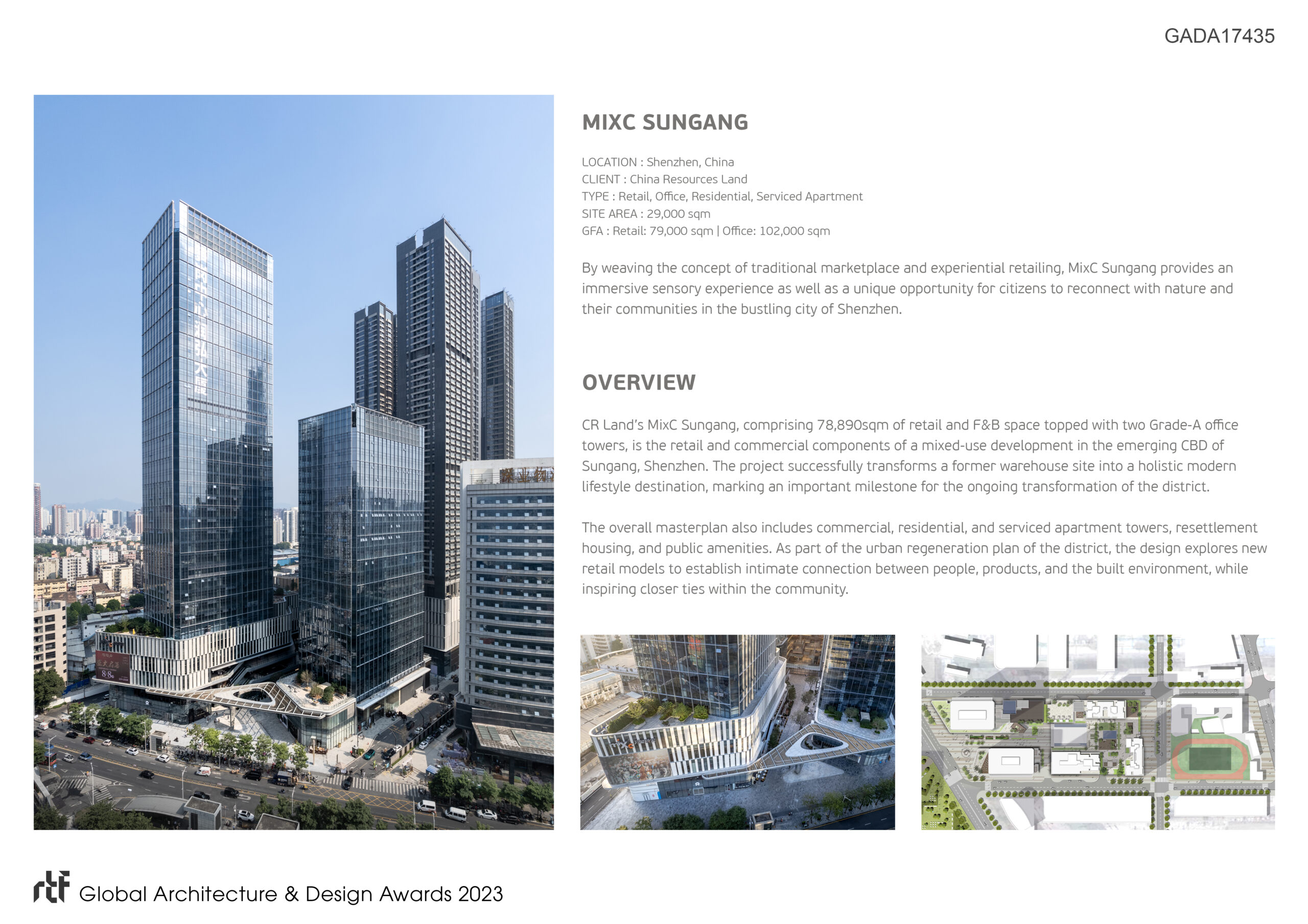 MixC Sungang, comprising 78,890sqm of retail and F&B space topped with two Grade-A office towers, is the retail and commercial components of a mixed-use development in the emerging CBD of Sungang, Shenzhen. The project successfully transforms a former warehouse site into a holistic modern lifestyle destination, marking an important milestone for the ongoing transformation of the district.