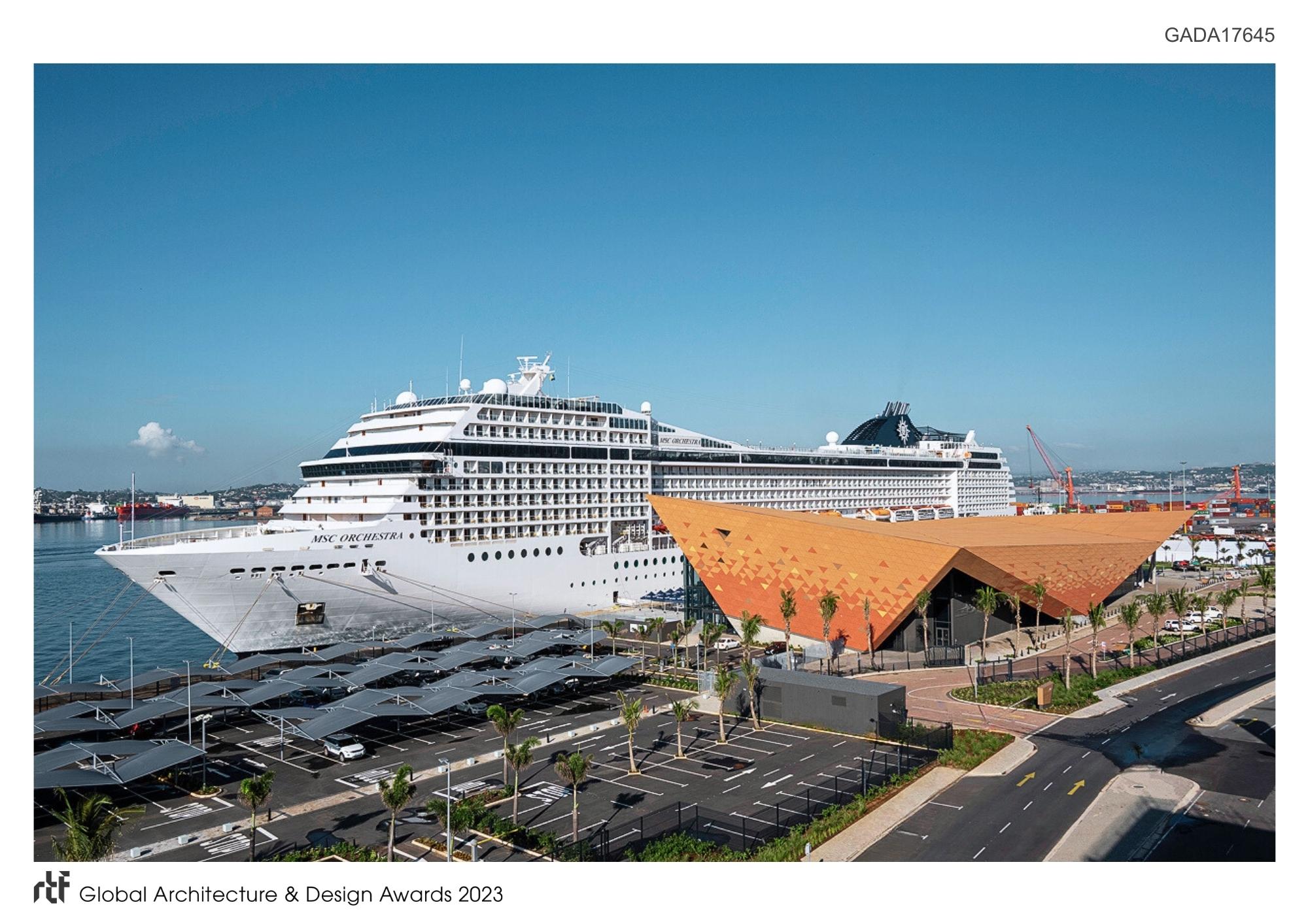 After decades of operating cruises out of a rudimentary shed, the Port of Durban and ocean cruise capital of Sub-Saharan Africa now enjoys an energising and catalysing landmark terminal. The building’s principle engagement with the city is its spatial and visual connectivity to the historic precinct and the creation of strategic outdoor public spaces linked to the city’s beachfront and harbour edge.