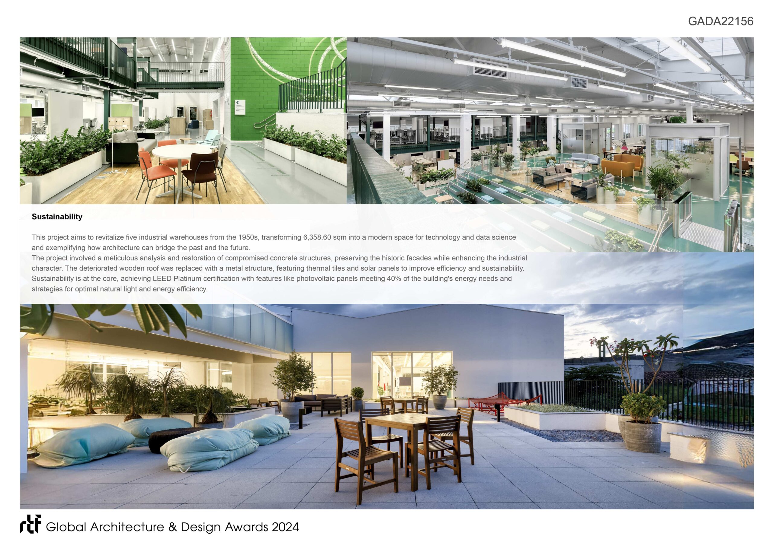 The new metallic roof accommodates photovoltaic panels, generating 40% of the building’s energy sustainably. A rainwater harvesting system reduces potable water consumption by up to 60%, collecting water for toilets and urinals.
