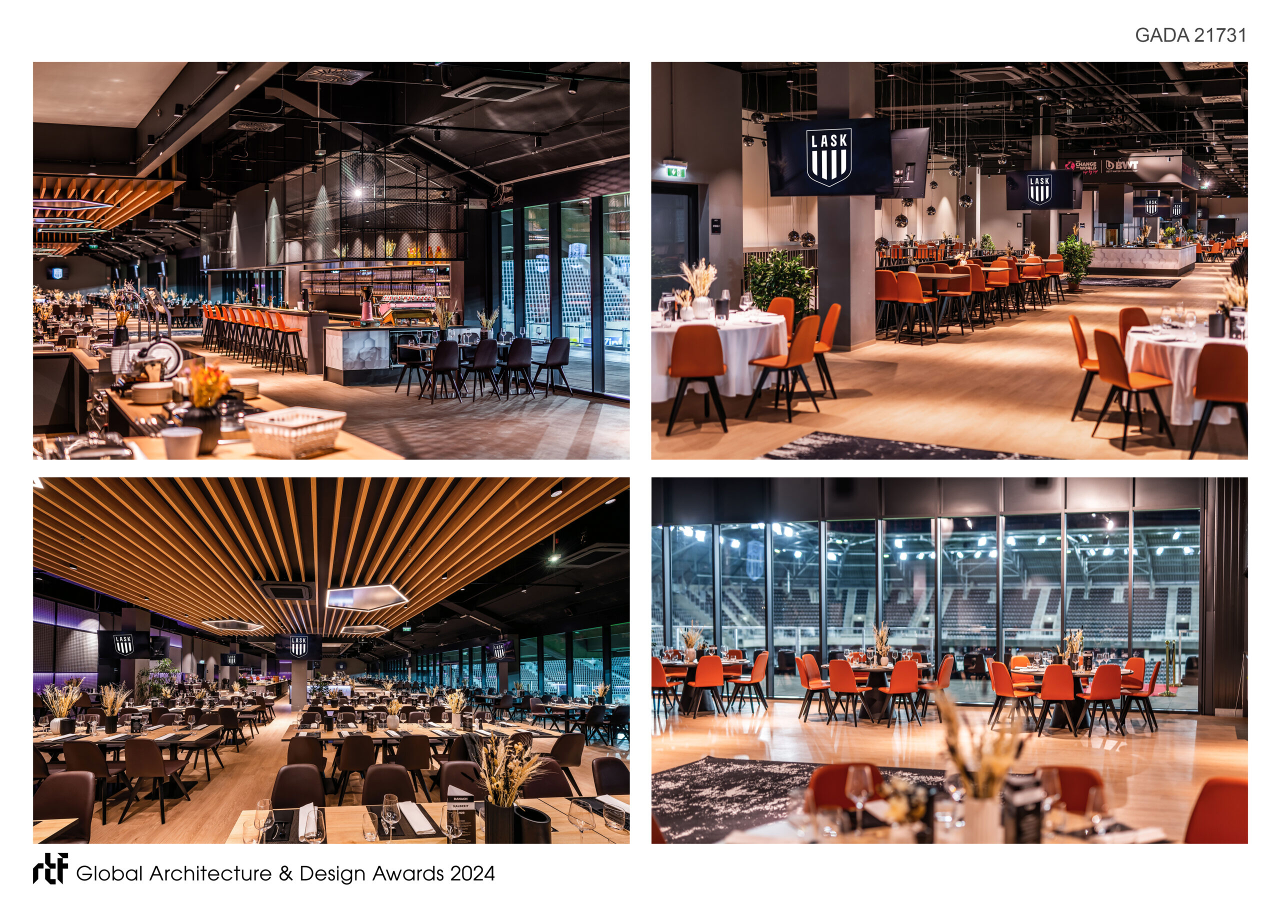 The new arena offers a capacity of 19,080 seats, 42 Sky boxes, 2 event boxes and a total of 1,736 business seats. The multifunctional arena of the successful traditional Upper Austrian club sets national and international standards. The distinctive, elegantly tapered shape of the arena looks like a diamond and is visible from afar. It creates immediate recognition and thus identity – it reflects the interior of the arena to the outside. The architectural design of the arena is timeless and authentic and puts the sport and the spectators in the foreground.