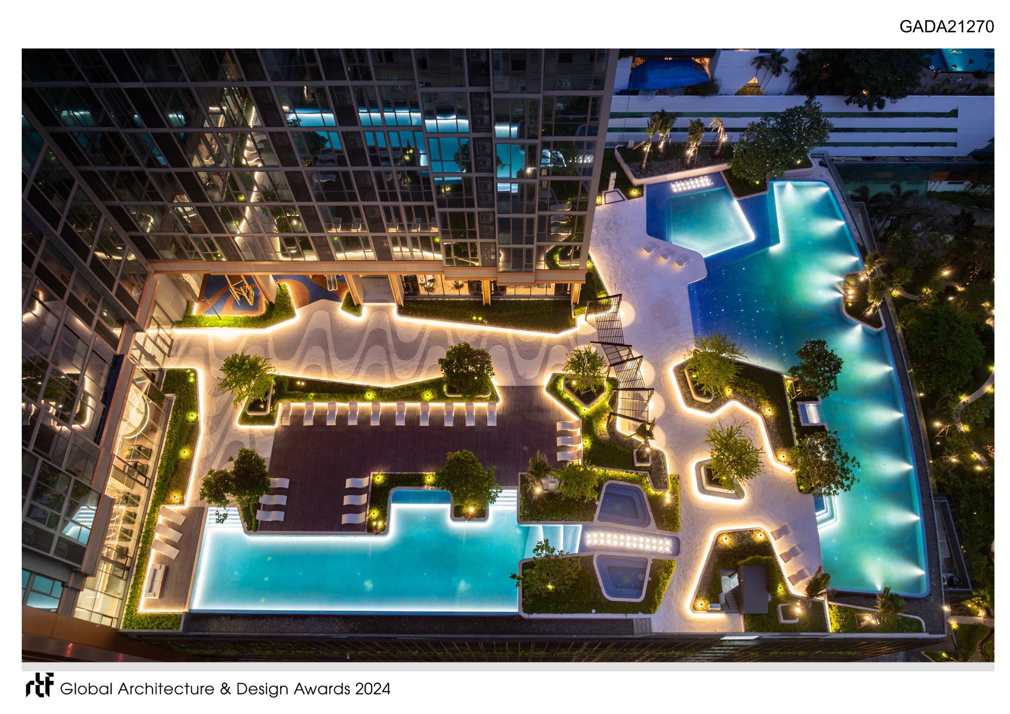 The interiors of Supalai ICON Sathorn are meticulously crafted to create spaces that are both luxurious and comfortable. A coastal palette of teal and cream dominates the residential areas, fostering a serene and calming atmosphere amidst the city’s vibrancy. Nature-inspired aesthetics are woven throughout the design, bringing a sense of tranquillity and connection to the natural world within an urban setting. The dynamic lobby and Gallery Hall set the tone with a blend of cosmopolitan elegance and natural elements, creating a welcoming ambiance for residents and visitors alike.