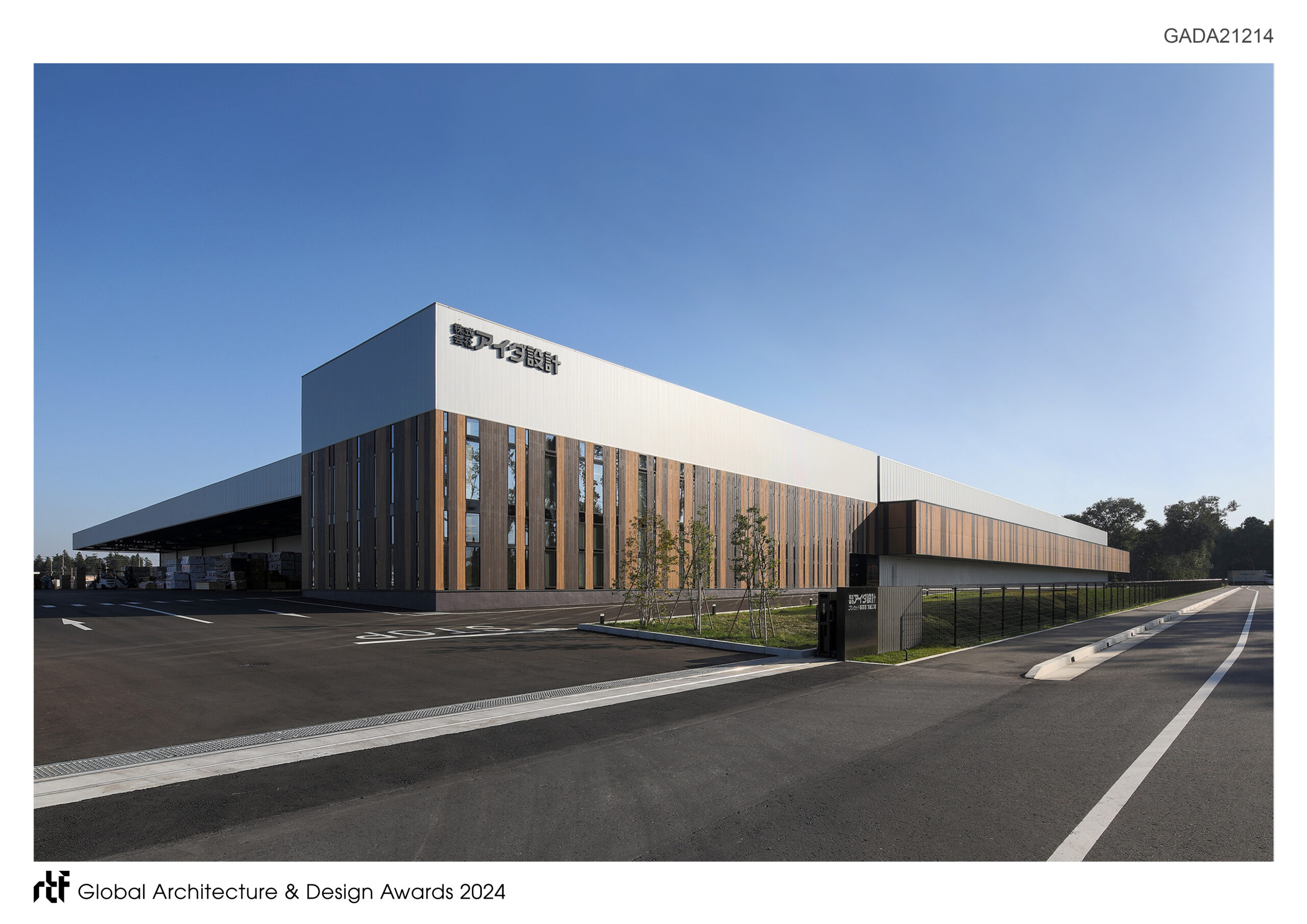 The plant plays an essential role in providing high quality houses. Its design concept is all about “creating an architecture which embodies the series of timber processing”. In other words, the concept is to visualize the simple process of lumber production: cutting out necessary parts from high grade laminated timber under strict control of sawing accuracy while minimizing material wasted. The whole design of the plant represents the house builder’s sophisticated precut method, namely the excellent quality of their housing, thoroughly showcased in its exterior and interior details. The idea of this architectural design was to manifest the corporate identity of Aida sekkei Co.,Ltd. and to deliver the inspiration for its future. In order to do so, several portions of mass were moved slightly from huge mass of 130 meter by 100 meter by 10 meter to create subtle contrast in space. While being quite simple and practical space layout, this method enables each space to function as viewing aisle, truck berth with deep and wide canopy, office, etc.