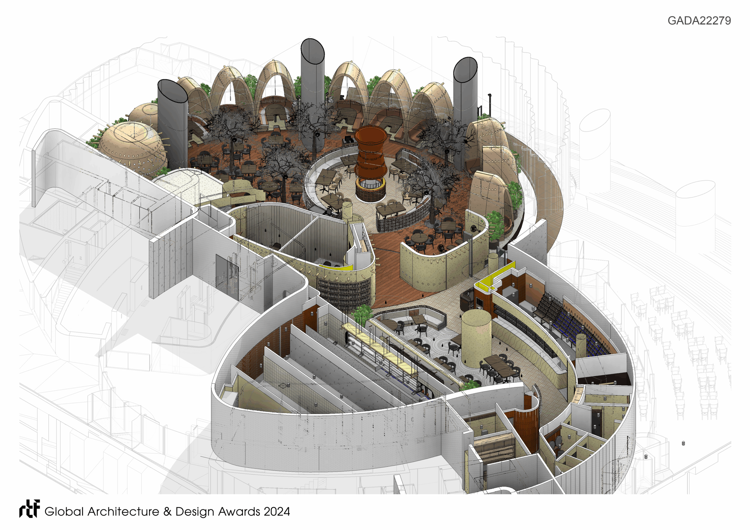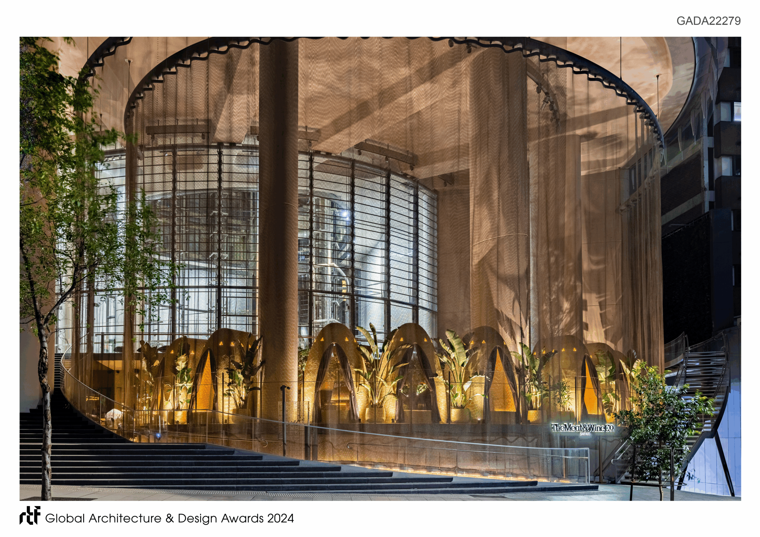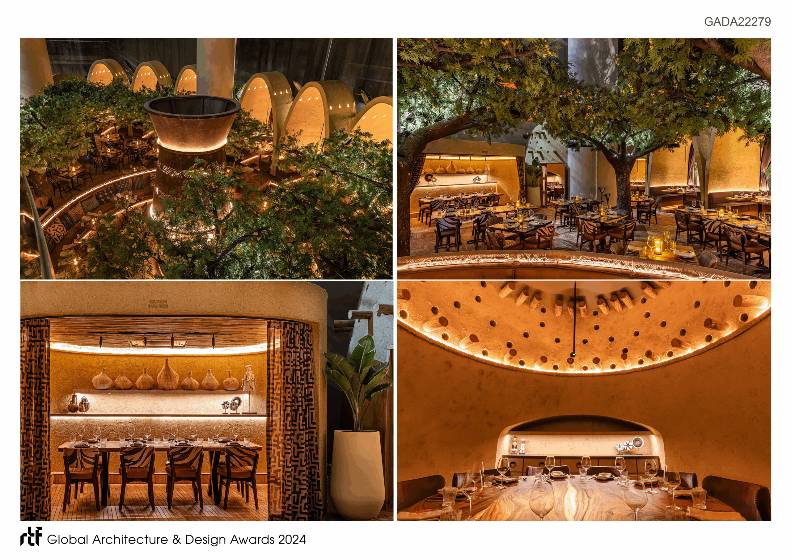 This project blends traditional African design elements and finishes in a very contemporary architectural aesthetic, creating an immersive dining experience through the creation of a transcendent village within a city.