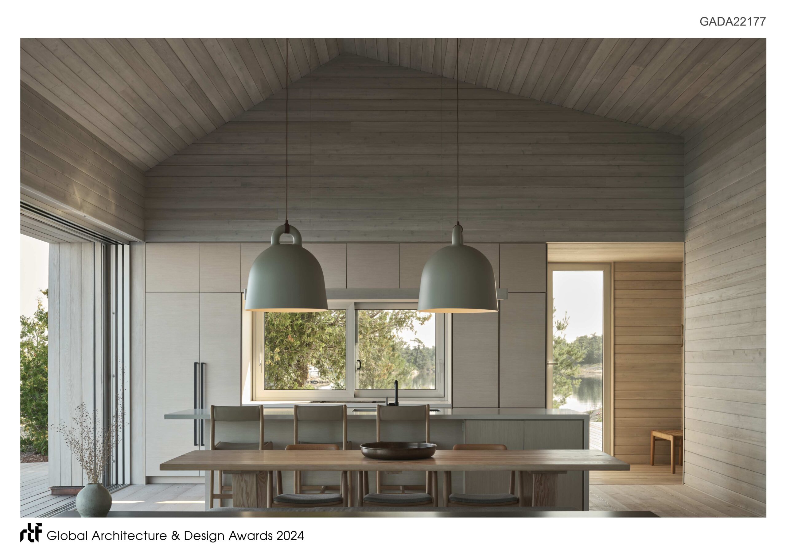 In the main cottage and bunkie, operable glass walls provide multiple entry and exit points, forming fluid transitions between indoors and outdoors – a design that enhances the experience of movement through space and time, deepening the cottaging experience by purposefully connecting inhabitants to nature and offering multiple panoramic views.