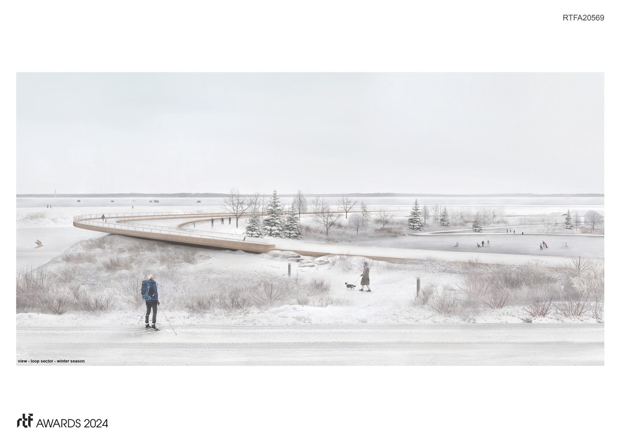Through this grand unifying gesture, Quebec endows itself with a reimagined coastline along which sustainable developments and architectural installations are deployed, allowing for a diversity of public practices in connection with local attractions.