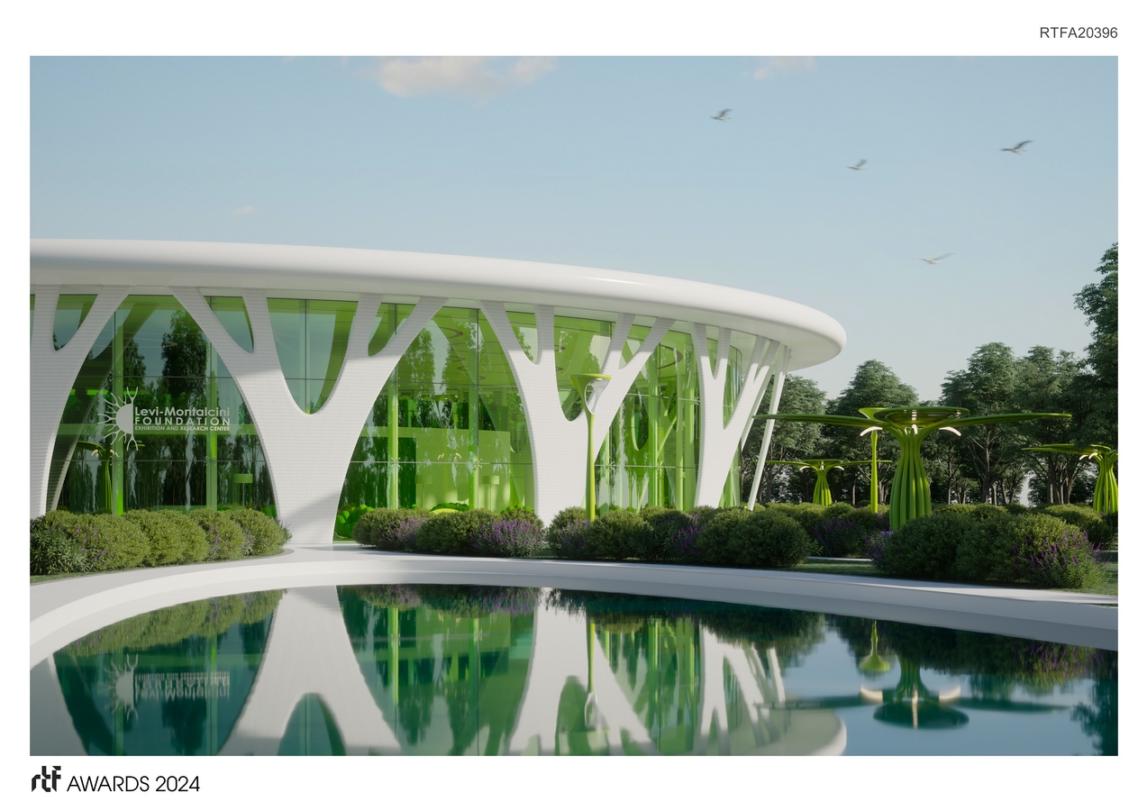 The idea behind the project is inspired by the strong parallelism that exists between the structure of the human nervous system and the root system of plants. The iconic architecture pays tribute to the research work of Prof. Rita Levi-Montalcini which led her to the discovery of nerve growth factor (NGF) and to the artistic works of her brothers, fundamental for the development of her incredible intuition and creative vision.