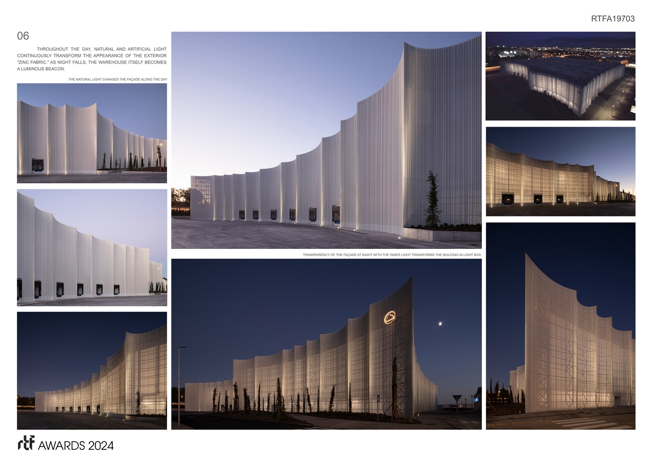 This design embraces the concept of translucent facades, offering a delicate balance between diffused light and opacity. The inner translucent facade system, integrated into the design, allows for ample natural light, reducing reliance on artificial lighting during the day. This not only contributes to energy efficiency but also creates visually dynamic appearances, especially when illuminated at night.