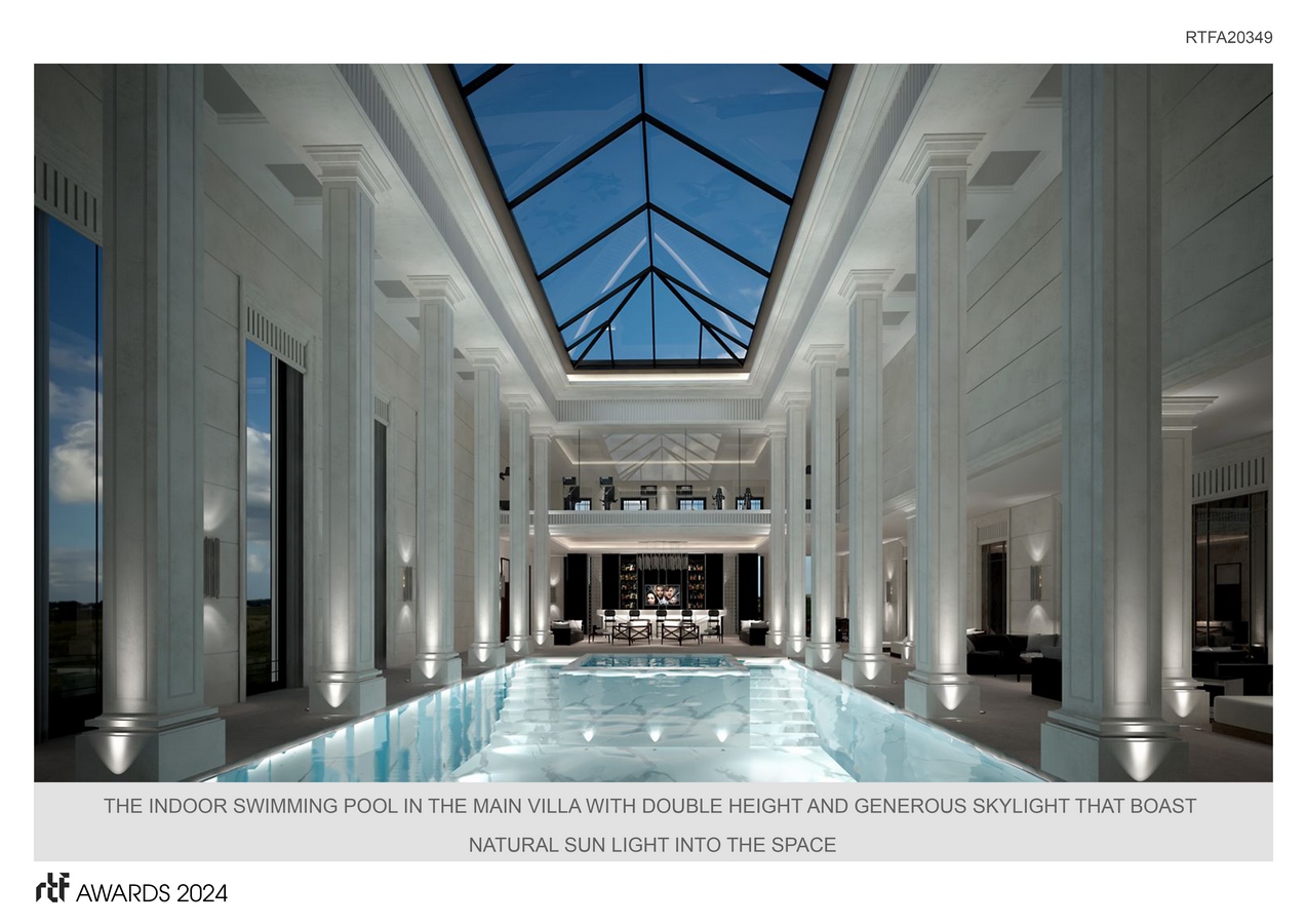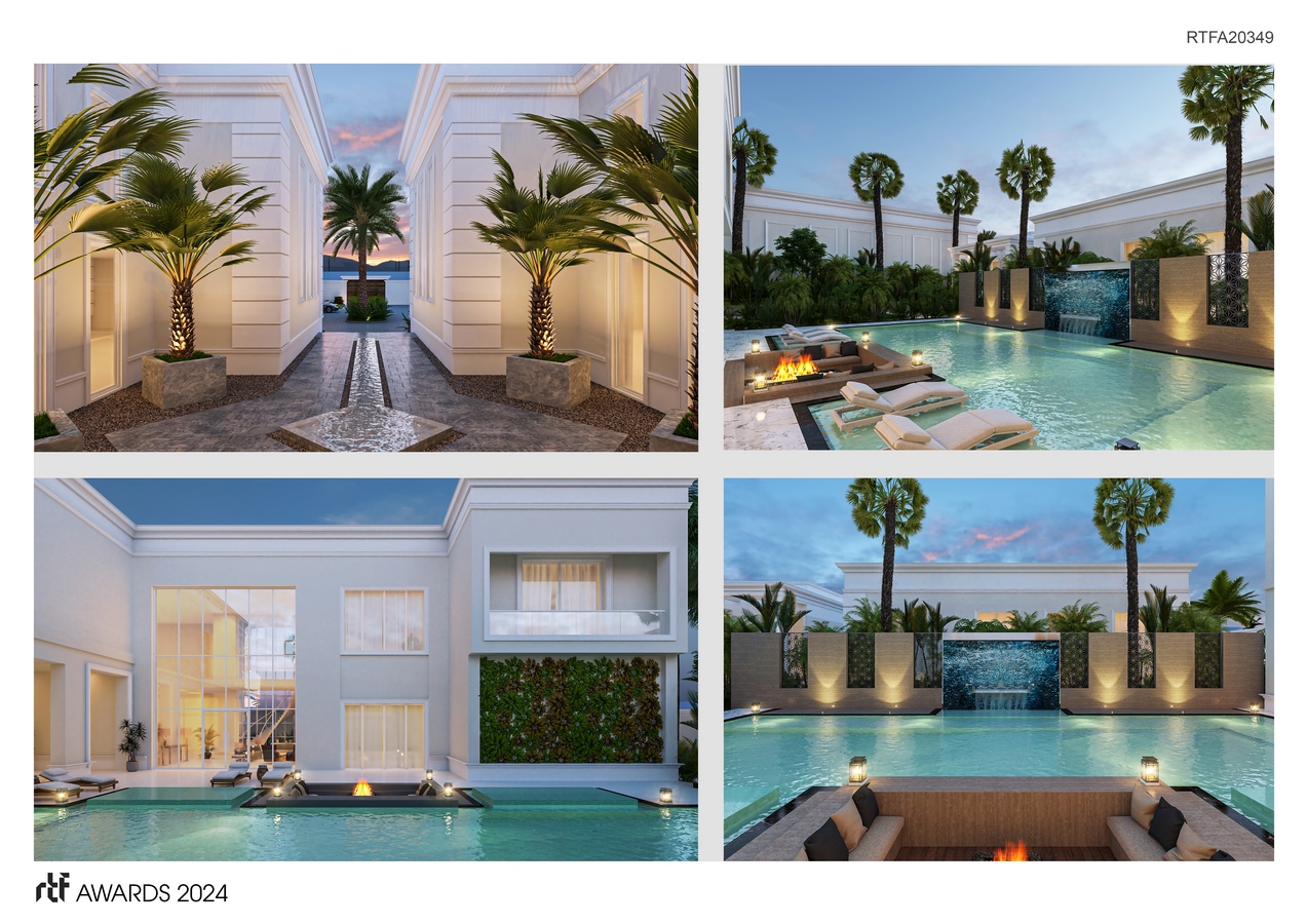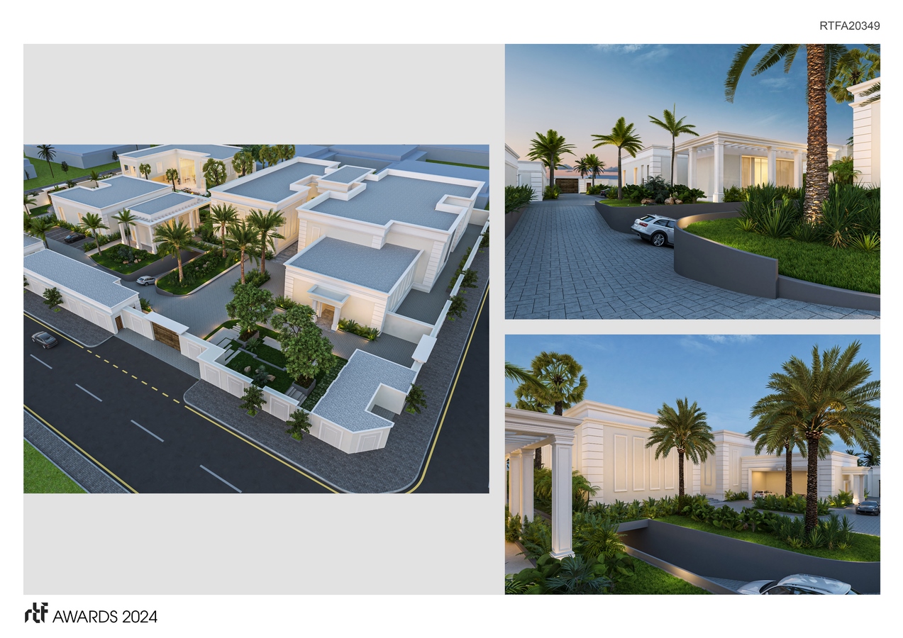 The project consists of a main villa, the main residence, a guest villa with outdoor pool, guest diwaniyah, gazeebo, service buildings (Staff, Guards, Technical rooms, etc.), including basement for Amenities and services with an underground parking.