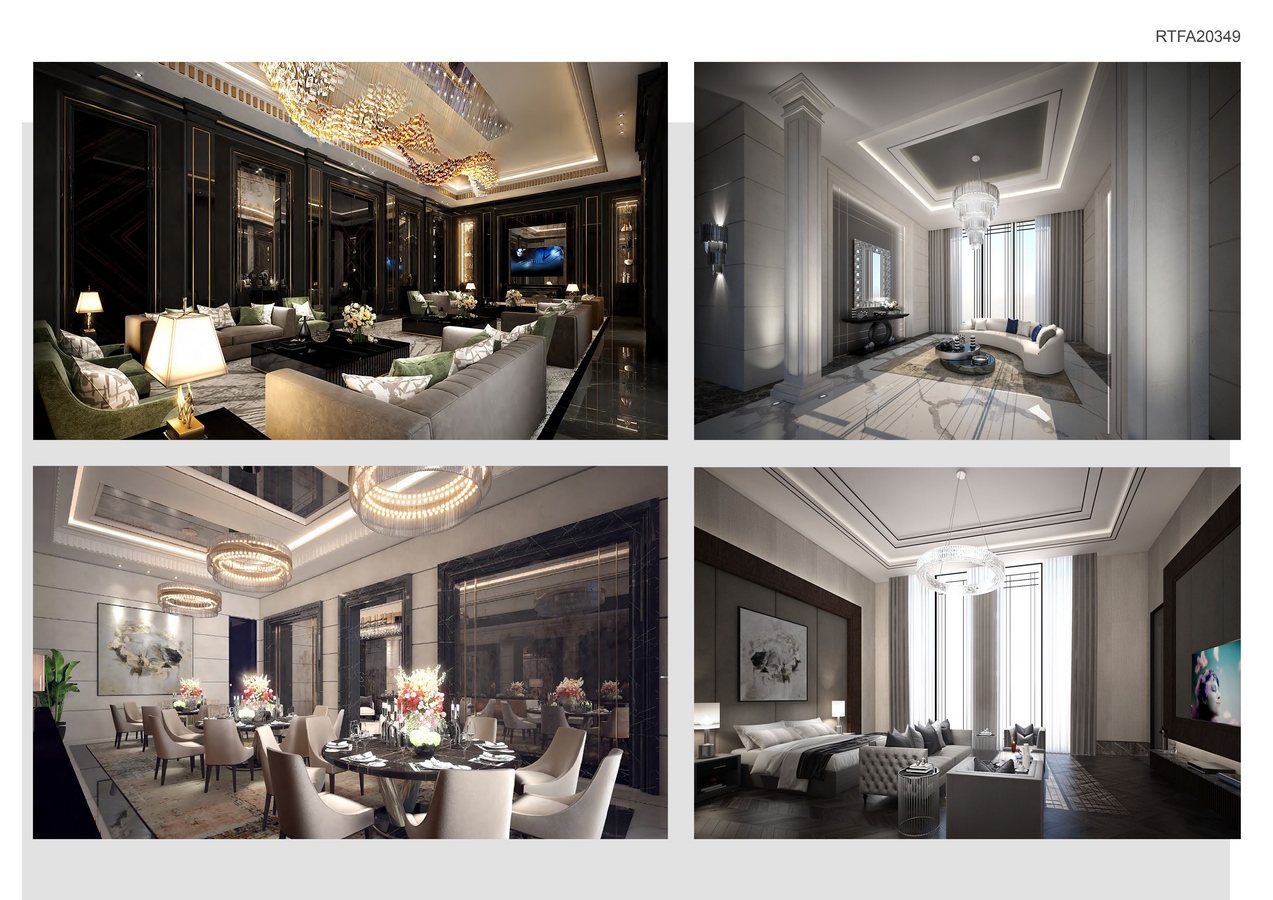 - Interior Design: The interiors will be designed to exude elegance and refinement. Each room will be carefully curated with exquisite finishes, luxurious fabrics, and custom-made furnishings. Elaborate chandeliers, intricate ceiling designs, and ornamental wall panels will add a touch of splendor to the living spaces. The integration of cutting-edge technology will ensure a seamless blend of modern comforts with classical aesthetics.