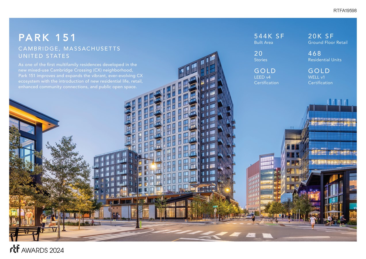Park 151 is a 20-story, 468-unit residential building at the apex of the 42-acre Cambridge Crossing (CX) neighborhood in Cambridge, Massachusetts.