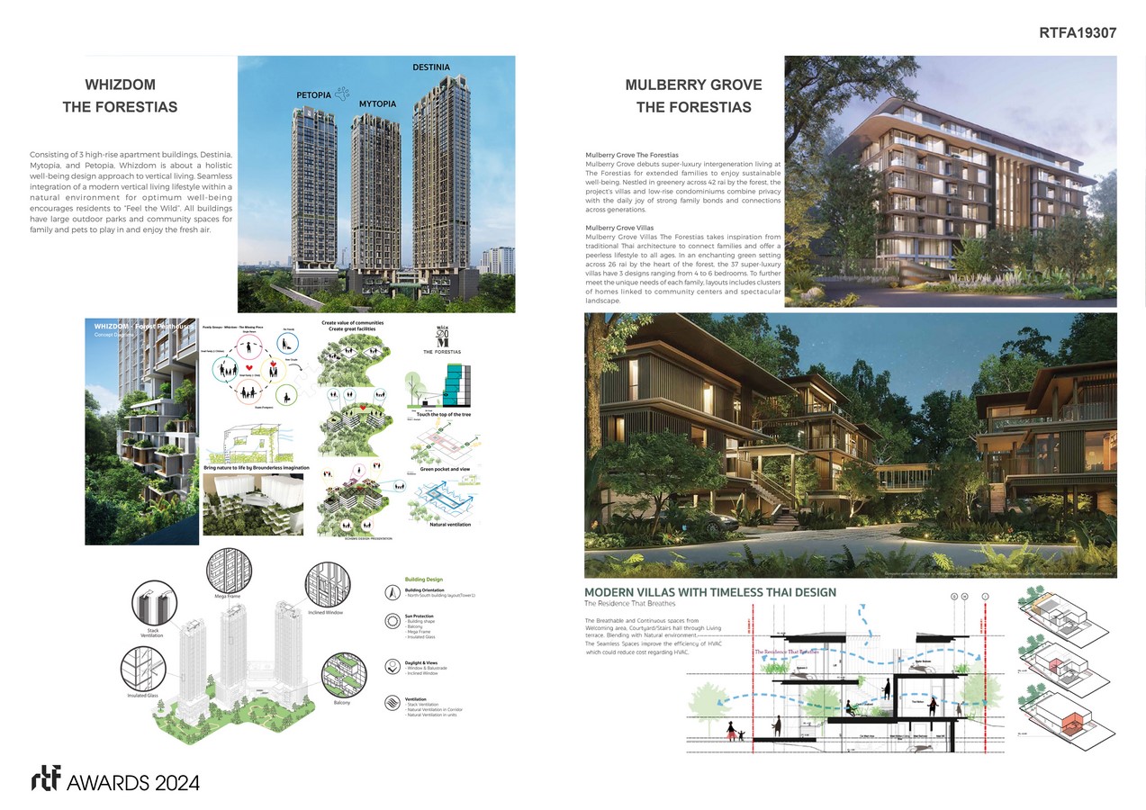 The Forestias is a 157-acre mixed-use development project designed for human and environmental well-being in the Samut Prakan, Thailand. The forested neighborhood is focused on creating a happy, healthy community that embraces all generations under the vision “Imagine Happiness”. The project aims to integrate its residents with flourishing natural ecosystems to provide a role model for sustainable urban development across Southeast Asia.