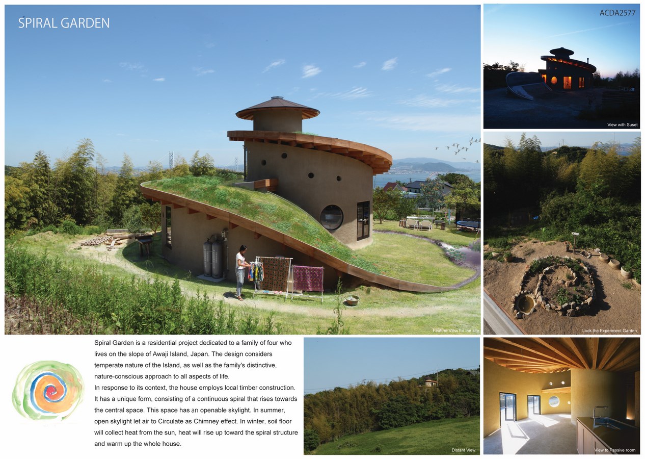 Spiral Garden is a residential project dedicated to a family of four, residing on the slope of Awaji Island, Japan. The design studies temperate nature of the Island, as well as the family’s distinctive, nature-conscious approach to all aspects of life.