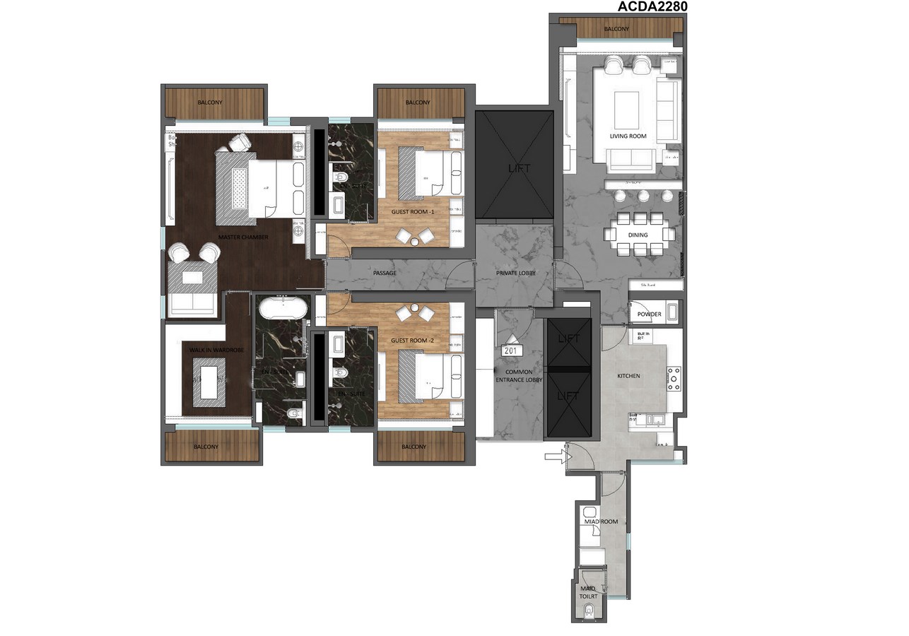 Once the design language was defined and the palette finalised, it was easy to incorporate different materials. It was more about striking the right balance and ensuring that it’s not overdone. Maintaining the integrity of each material was very critical and challenging.