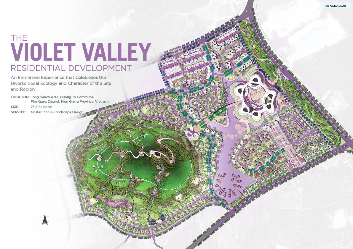 Phu Quoc Island has become a holiday hotspot in Vietnam in recent years as the provincial and central governments have rolled out ambitious plans to develop it into an international hub for eco-tourism, resort tourism and amusement and a regional financial centre. Considering the rapid growth in Phu Quoc, the existing plan was no longer appropriate and needed to be redeveloped to address the increasing demand of living and relaxing for the locals and tourists. The new master plan for Violet Valley will create a unique community that fits seamlessly with its surrounding natural environment, is intimately connected to and shaped by its relationship with water, and fosters a perfect balance of work, life, and play.