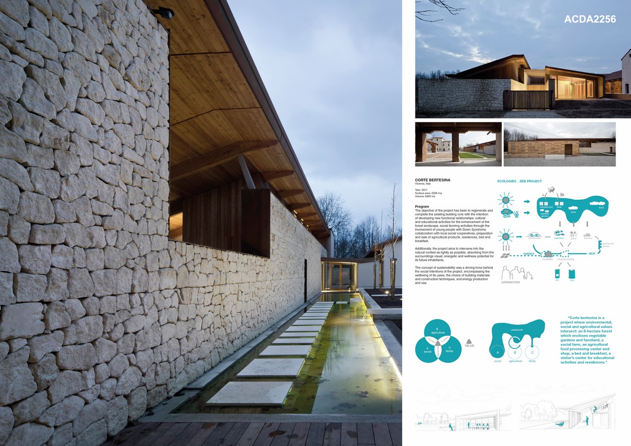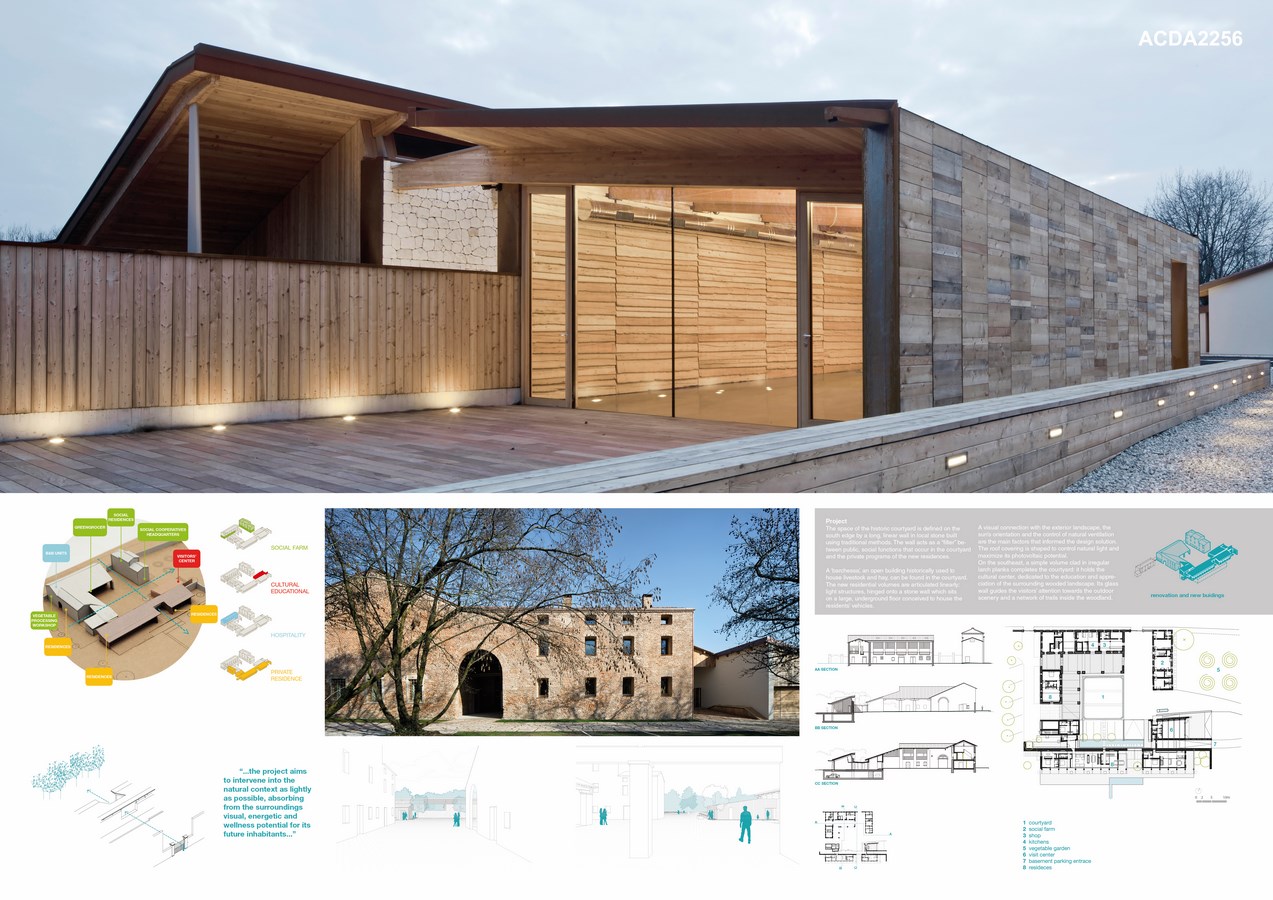 The objective of the project has been to regenerate and complete the existing building core with the intention of developing new functional relationships: cultural and educational activities for the enhancement of the forest landscape, social farming activities, preparation and sale of agricultural products, residences, bed and breakfast. Additionally, the project aims to intervene into the natural context as lightly as possible, absorbing from the surroundings visual, energetic and wellness potential for its future inhabitants.