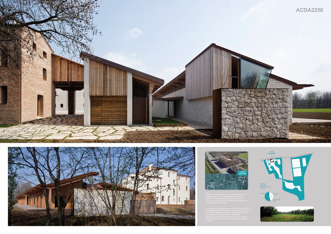 Corte Bertesina is a project where environmental, social and agricultural values intersect: an 8-hectare forest which encloses vegetable gardens and farmland, a social farm, an agricultural food processing center and shop, a bed and breakfast, a visitor’s center for educational activities and residences.