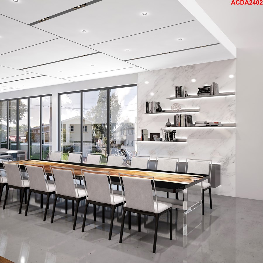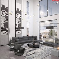 The homeowners have a great appreciation for fine art and photography. Their collection is showcased throughout, delivering a sense of authenticity and culture. Precise planning was needed to ensure each piece was displayed in the best of light and appropriate environment. The 2nd floor features a wide, gallery style walkway with oversized prints of special family moments, amplified with 70” tall sconces between photos (not shown to maintain privacy). In the living area 24’ frames were constructed on site, using concrete and black metal, to house oversized, abstract art, that was painted by the wife’s favorite artist, specifically for their home(actual artwork not shown in rendering).