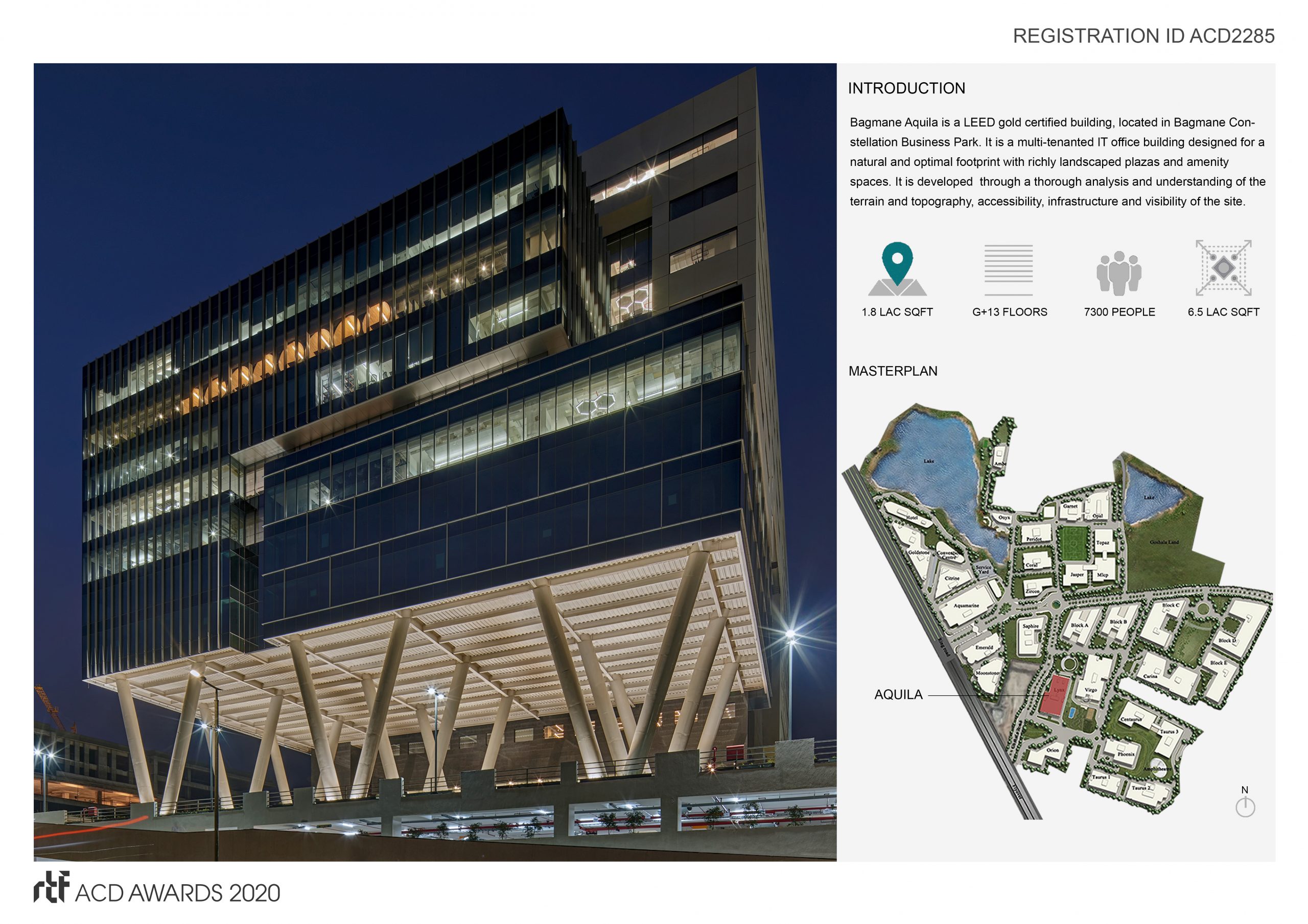 BAGMANE AQUILA is a LEED Gold certified building, located in Bagmane Constellation Business Park. It serves as a multi-tenanted IT office building designed for natural and optimal footprint with richly landscaped plazas and amenity spaces. It is developed through a thorough analysis and understanding of the site’s terrain and topography, accessibility infrastructure and visibility.