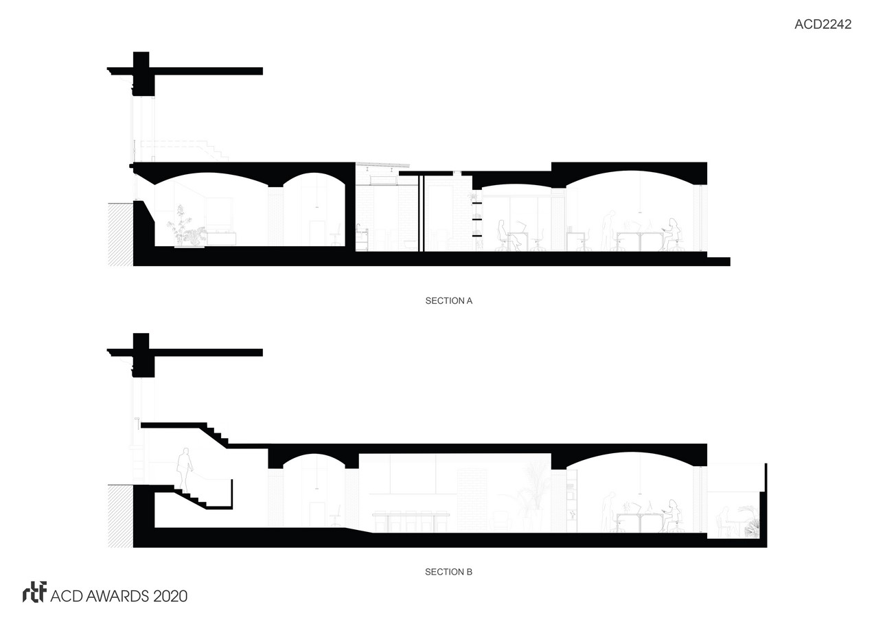 All the factory walls and solid brick roof vaults are whitewashed, stripping off any previous cladding. They remain visible, with their patinas, marks and wounds that allow a historical reading. A unique finishing material in the enclosure is combined with flooring, doors and furniture made of pine wood and white steel for carpentry.