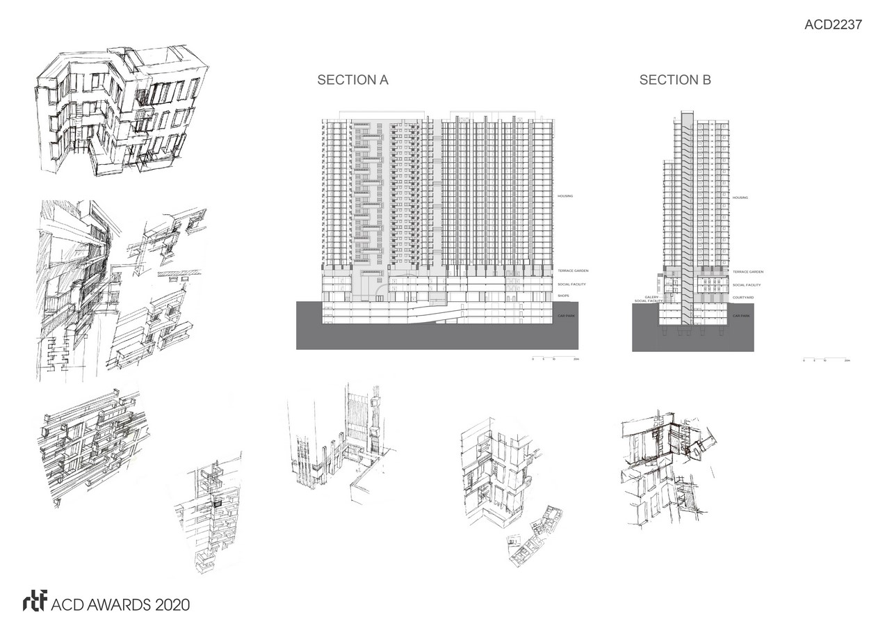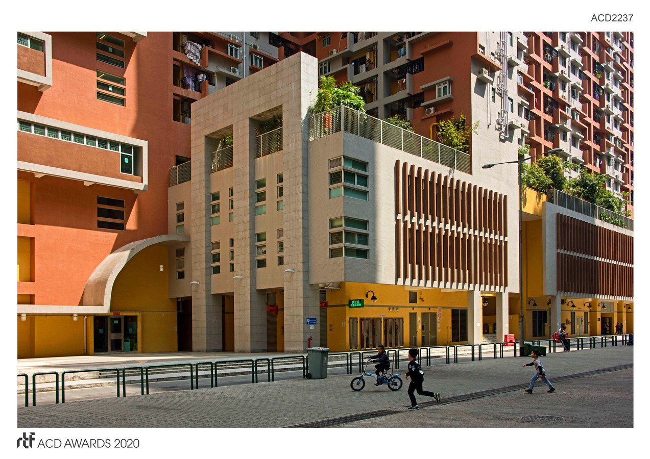 We began by questioning the very common typology of podium and tower, widely in use both in Macau and Hong Kong. This typology usually occupies the whole of the plot with three levels of construction, reducing the public space to a minimal sidewalk. The urban footprint of the Fai Chi Kei Public Housing refuses this common podium and tower scheme.