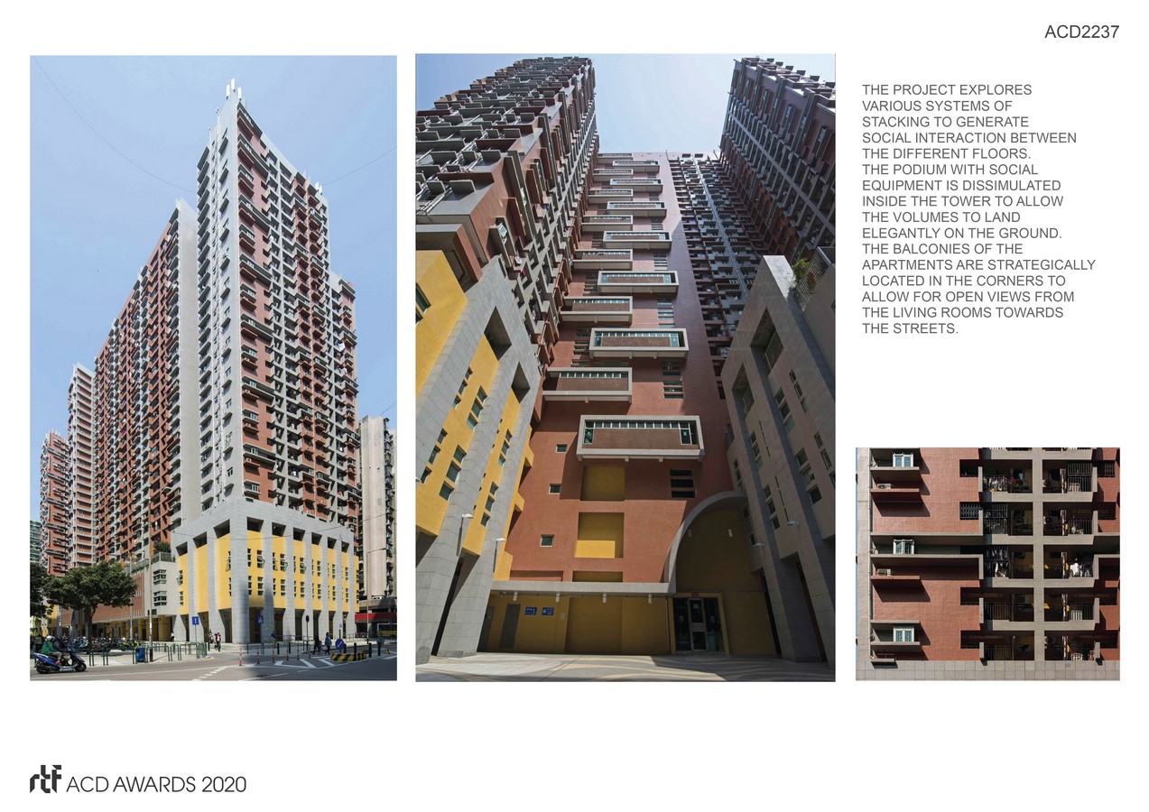 Macau is a city of extreme high density and recently has been experiencing a steep increase in housing prices and real estate speculation. In 2010 the government decided to develop some plots of the city as social housing and we were commissioned a building in the northern zone of the Peninsula, one of the densest areas of the city. We had a brief to fit over 700 apartments in a relatively small city block complying with the local regulation for shadow area.