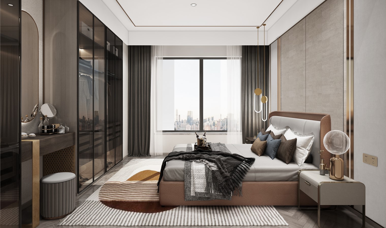 In the design of this set, the furniture full of artistic modeling sense echoes the simple sense of hard outfit design with large area of blank color, elegant tone and smooth curve.