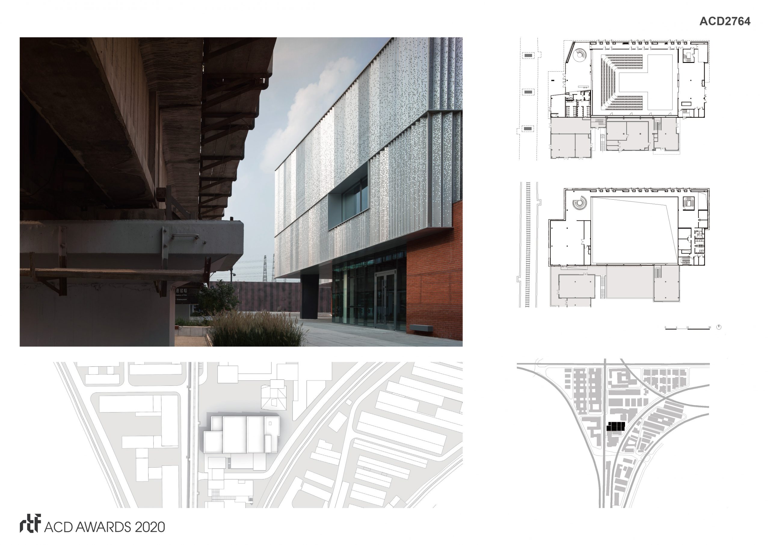 As heart of this creative zone, the project needs a solution that reflects both the site’s past and its future potentials. We proposed a strategy of “spatial prototype shift” to transform such industrial space to an art center targeting public engagement. It appropriates the prototype of saw-tooth shaped plant building and adapts it for multiple programs: exhibitions, cultural events, performing arts and festivities. While the characteristic volume gradually extending forward, twisting at the end as it almost touches the elevated railway, it seems to levitate on a mass of red bricks, responding to the history of the site.