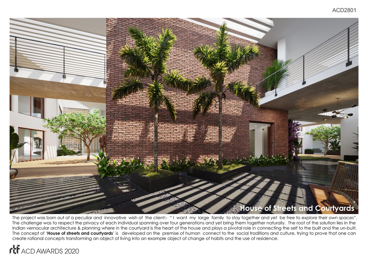 Living in a joint family can be an enjoyable experience and in Indian culture, different generations’ living together under one roof has been a tradition. The legitimate need of privacy in recent times cannot be ignored. The ‘House of Streets & Courtyards’ with an area of 22820 sq.ft at Indore is a multi-generational house designed for three brothers and their families to dwell together under one roof yet having their private spaces that can be accessed exclusively. The design houses three bungalows blended together under one roof.