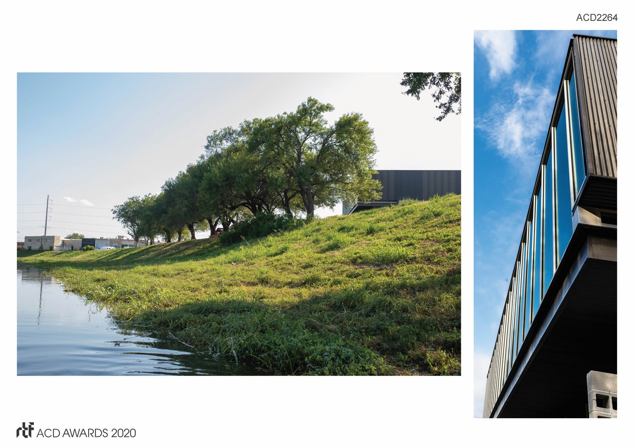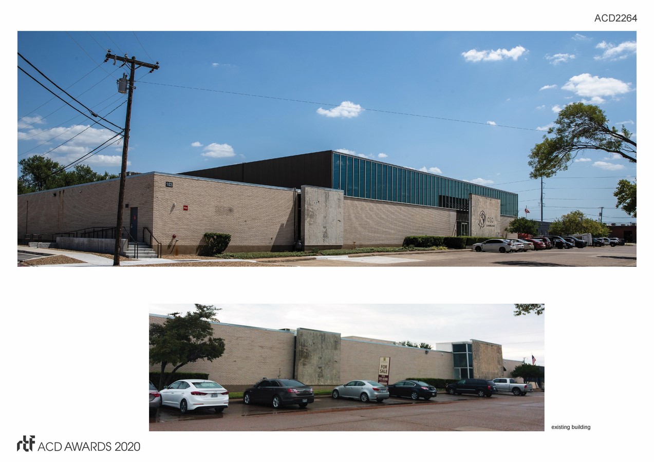 The site is situated in an industrial pocket neighborhood bounded on three sides by a winding river strand which was Dallas’s original major river prior to its engineered relocation south of the site in 1928. The building, built in 1968, was part of post-1928 large-scale development projects leading into downtown.. The builing became an anchor in the industrial neighborhood by providing photographic materials to professionals in the area. As a result, the neighborhood is now home to an informal guild of photographers and creative professionals who occupy the surrounding warehouses built successively thereafter. However the building’s urban identity as the ‘groma’ of the neighborhood has nearly been lost though degenerating tenant viability and threating demolitons due to migrating industries and local land consolidation.