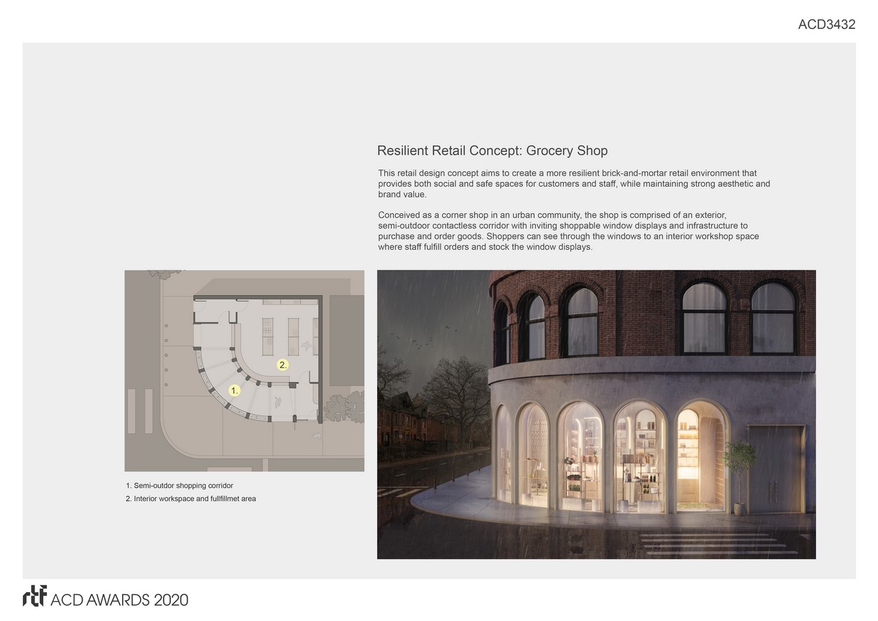 we sought to create a grocery shop concept that reimagines how retail spaces can be designed to facilitate a more resilient customer service model.