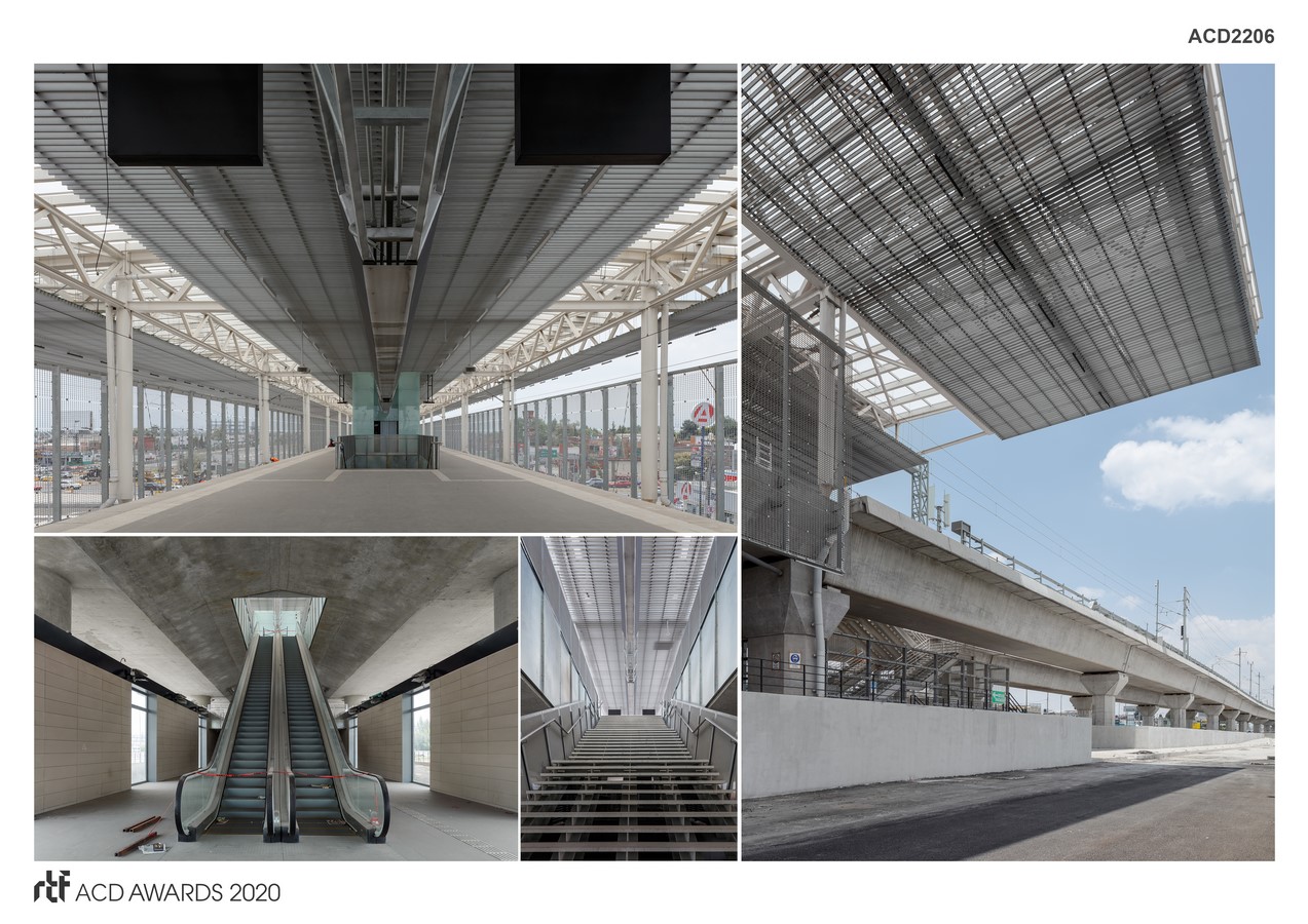 The stations were designedwith the same structural system of the viaduct, as a continuation of it (columns and supported viaduct) Only the structural board is widened to receive the platforms, facades and finishes.