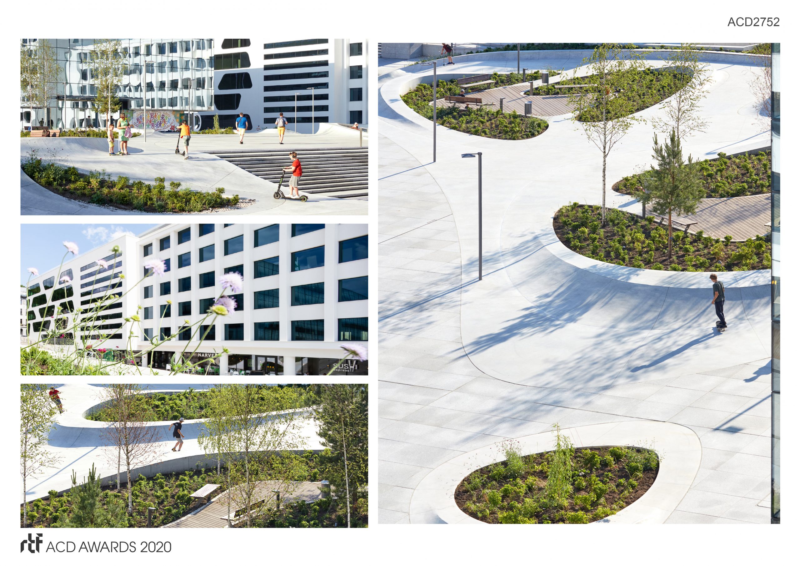 This hybrid of skate park, playground & urban living room is the perfect venue for a young, dynamic society. What was previously a largely unused is now a new, inviting public space where you can casually enjoy a coffee or work outdoors while the kids play in the water, youths skate & students relax in the sun…