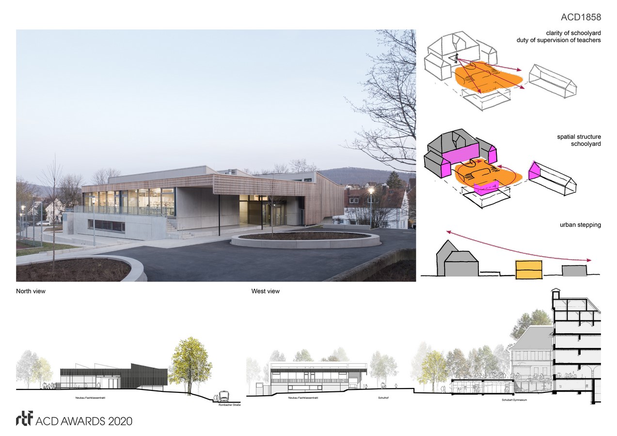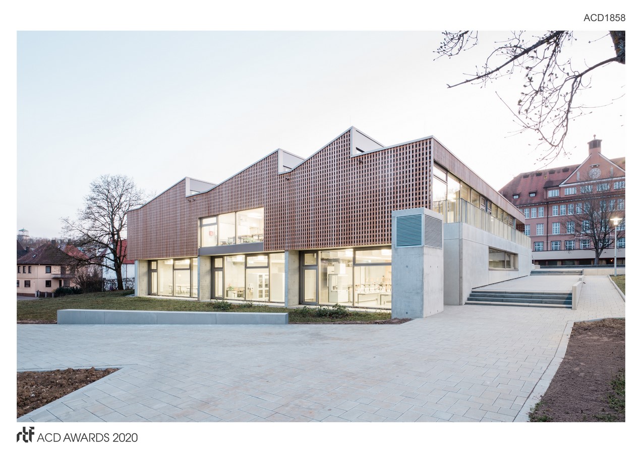 Room climate und lighting conditions have a demonstrable impact on educational success. Thanks to the use of environmental energies, the science block enjoys high levels of natural lightning and thermal comfort. Pre-construction trials with various different roof shapes revealed that the north-facing shed roof design provided the highest levels of daylight yield for the new science block. Alongside good room acoustics the school building offers a high-quality interior environment. This fosters a sense of wellbeing that increases user acceptance, reduces vandalism and helps creating identity and identification.