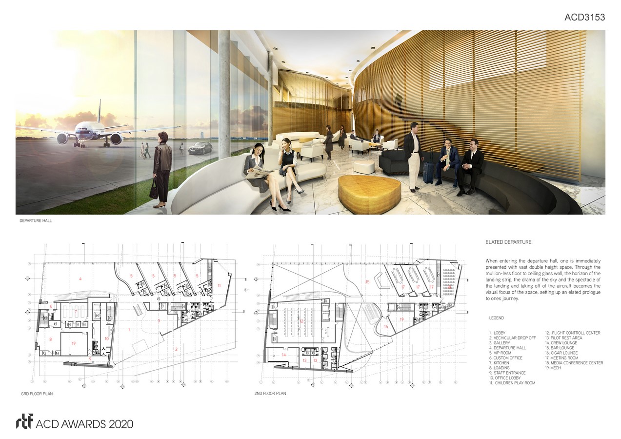 Under these unique circumstances, our client_Apexair has engaged us to design a masterplan to accommodate their expanded campus. Originally an MRI company specialised in the maintenance, repair, and over-haul of private jets; Apexair has since expanded its service in providing charter private flights. Its 250-mu aviation campus, located next to the new International Airport, will consists of series of aircraft hangers, maintenance depot, administration tower, canteen, staff residence, fitness centre and its own private jet passenger hall (FBO). As the pilot project of this multi phased masterplan, this passenger hall will provide dedicated and deluxe services to its exclusive clientele