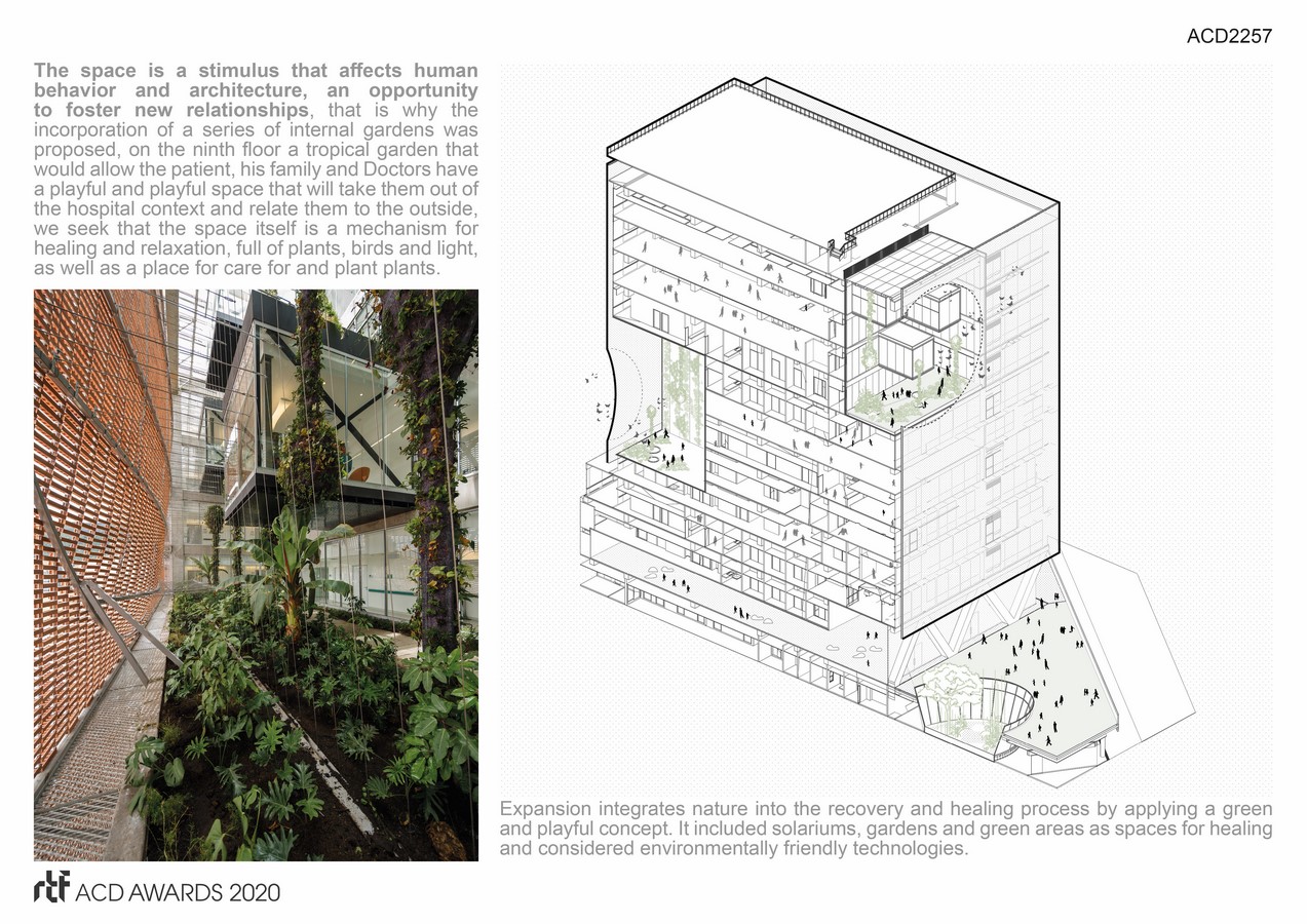 The project´s main idea is connection. Our comprehension of a metropolitan scale is essential at the moment of thinking of an integral architectonical answer therefore, our proposal looks forward to be a diagonal connector and work as a catalyzer for new flows, activities, human relationships taking healthcare to a whole new level.