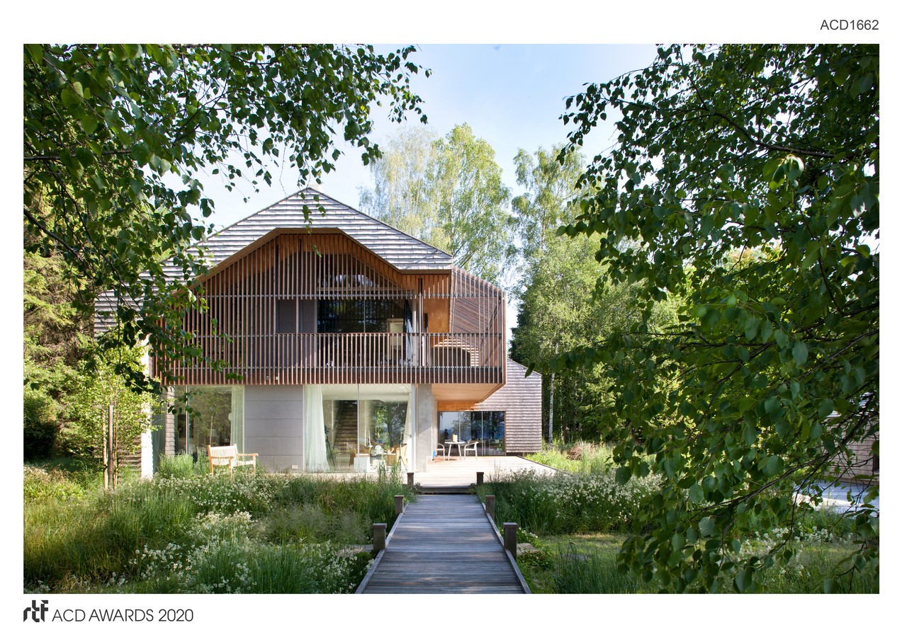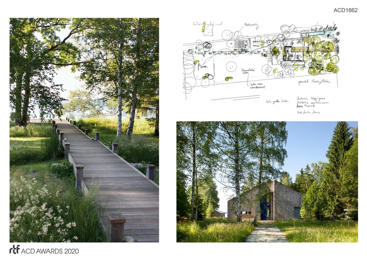 The dream of the owners was to build a house onto the narrow lake site which has a close connection to nature combined with a Japanese atmosphere. The Japanese culture reflects a feeling of sophistication, perfection in detailing, open flowing spaces and the accommodation of changing seasons. The aim of the architect was to design a Gesamtkunstwerk where the Architecture is to express a strong relationship to nature in which the house is part of the natural environment.