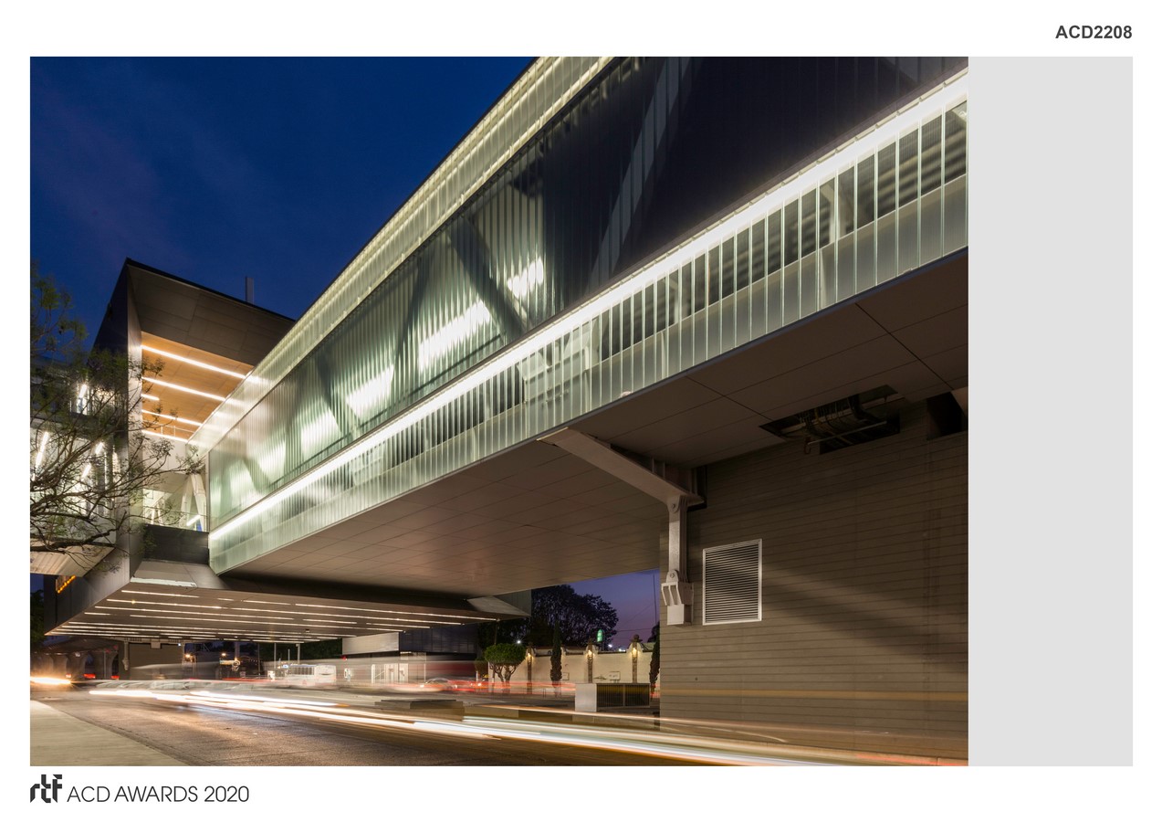 The facilities are integrated into this scheme because the two main columns house a void through which all the ducts run in the transition between the viaduct and the technical premises. Reducing the number of visible ducts to almost zero.