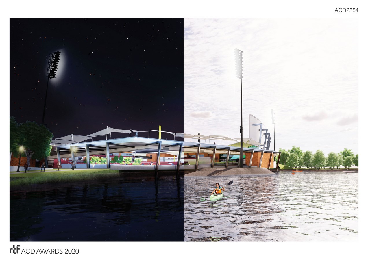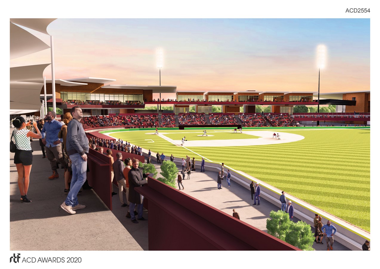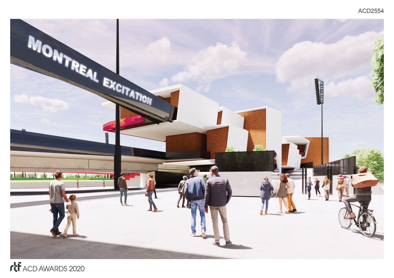 Expo 67 Island located in Montreal, Quebec, Canada was the host site of the 1967 World’s Fair, considered by many to be the most successful World’s Fair of the 20th century. The challenge for this design is to respect the historical significance of the site, embrace natural topography and pay homage to the signature architecture that surrounds it. The incorporation of design features that include large scale video walls, a fully equipped sound stage, expansive pedestrian concourses with unobstructed views to the downtown business district, walking trails with lake access, and the flexibility of use of the playing field surface as an ice rink for winter hockey training demands that this facility be regarded as more than just a ballpark; it is truly a community gathering space.