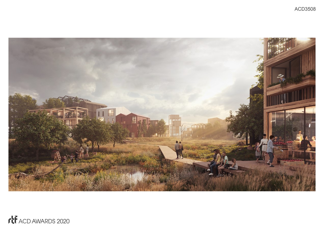 Just beyond the Copenhagen city center, Vejlands Quarter transforms the former dumping ground site into a model for sustainable living, balancing human priorities with a strong commitment to the natural surroundings. Designed to accommodate 7,000 residents, the community will be entirely timber construction, with individual buildings featuring birdhouses and animal habitats integrated within the building facades. Vejlands explores a living model with nature at its core, simultaneously crafting a new neighborhood to accommodate the demands of the growing city and increasing local biodiversity.